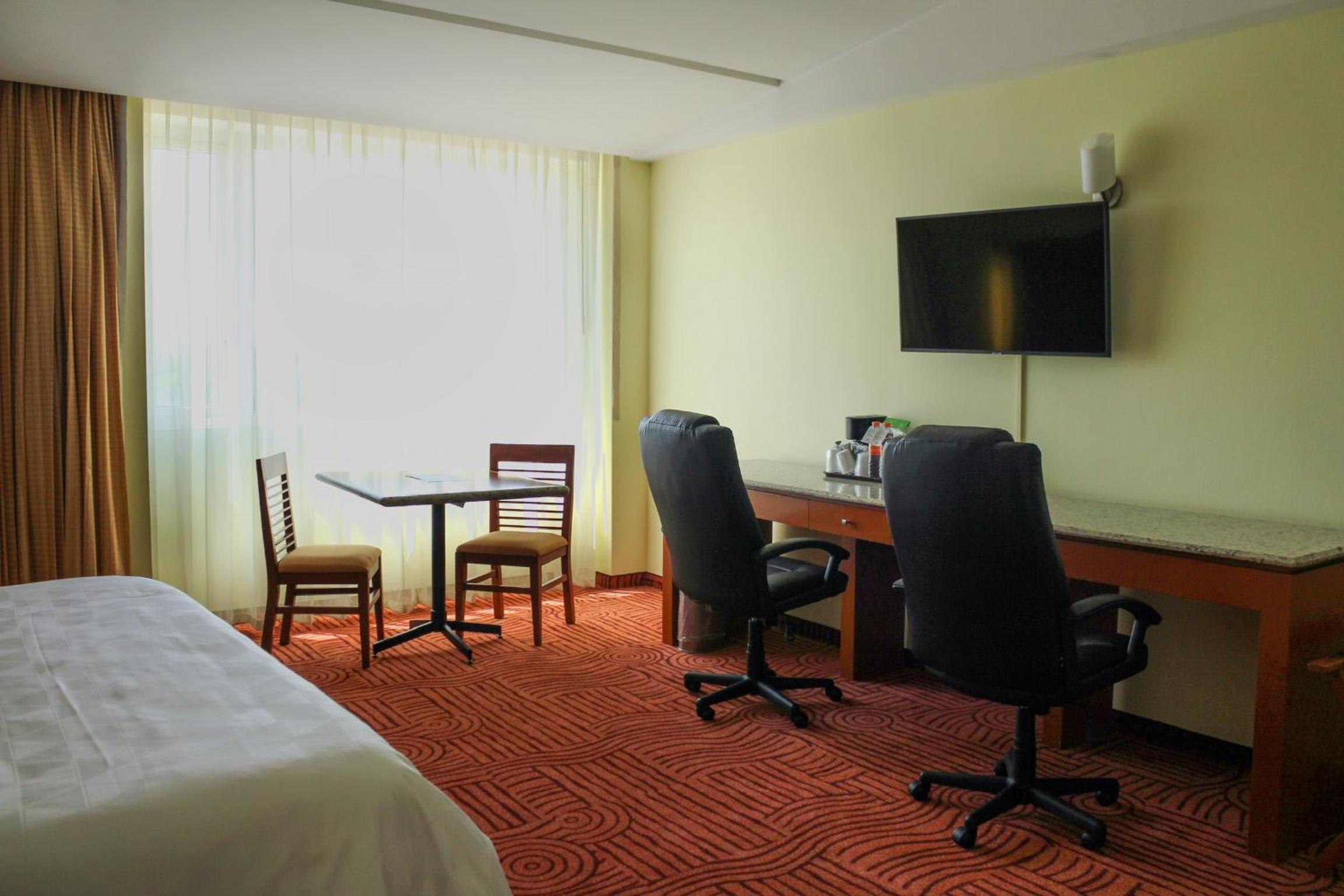 La habitación amplia, el desayuno buffet rico y variado, la vista a los volcanes. Limpio en todas las áreas. El personal sumamente servicial y amable. Si viajas con alguien en silla de ruedas como en mi caso este lugar es la opción ya que los espacios en todo el hotel facilitan su acceso.