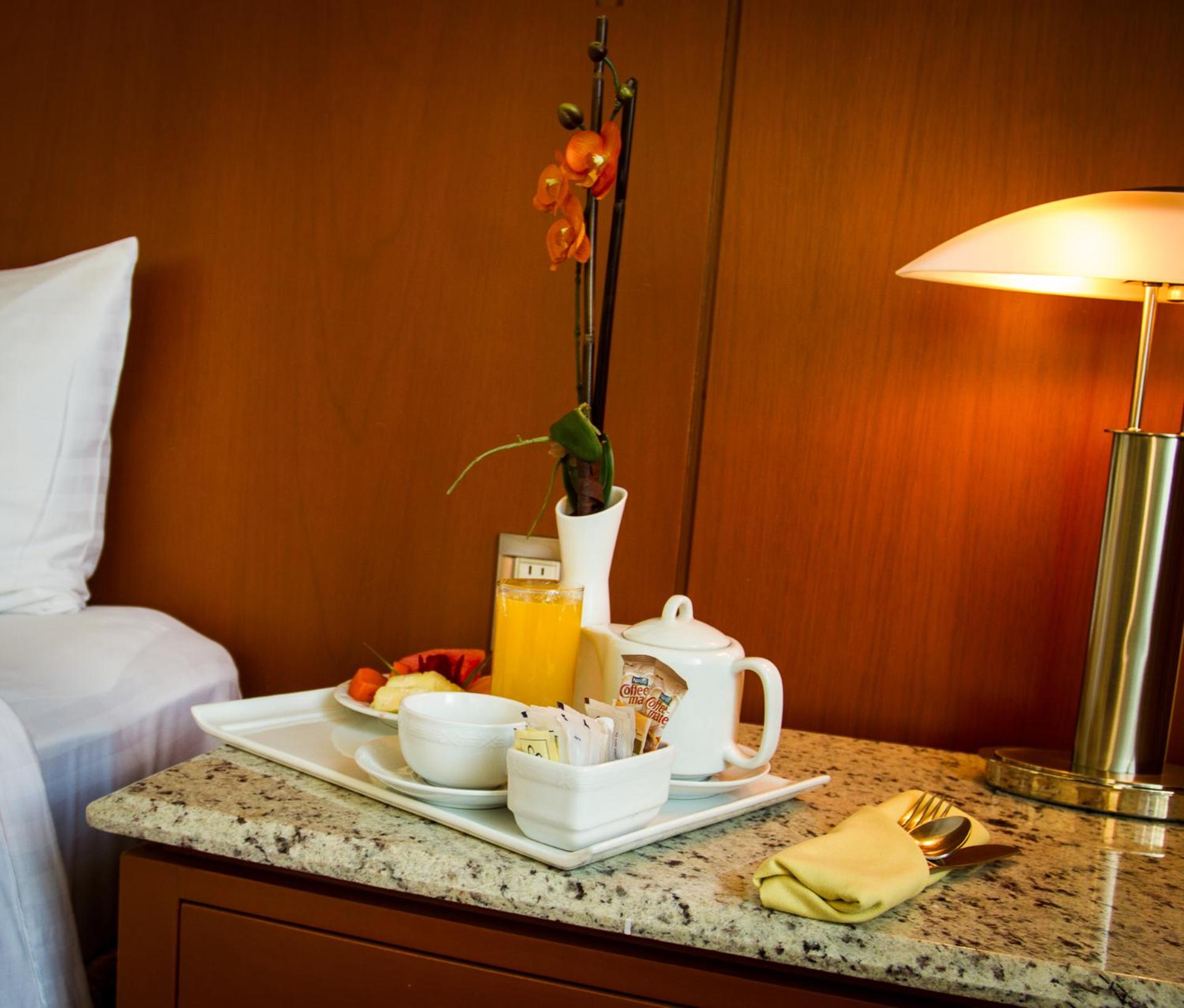 For any room including breakfast, the rate includes a coupon redeemable for breakfast in the hotel restaurant. Limit: USD 20 per room per day.