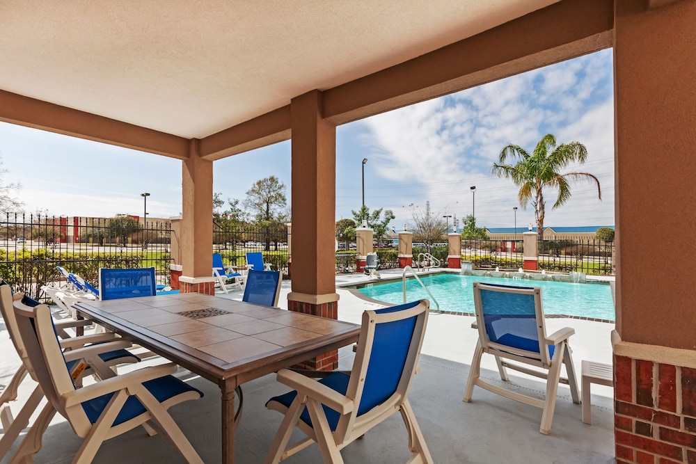 The location was decent for us. Far enough from the big city and close enough to NRG stadium. I liked that it was set back by a shopping center. Felt safe. Newly updated. Nice looking hotel. Double king beds AND a ceiling fan were my favorite parts! The smell when you opened our room smelt like mildew/wet. They had a humidifier in there so I assume there was some type of spill. It was awful. The people above us had kids stomping and running all night long. I had to complain at 1am and 4:30am and I was finally able to fall back asleep. Pool area is nice. Breakfast was great! We did have a decent sized spider in the room.