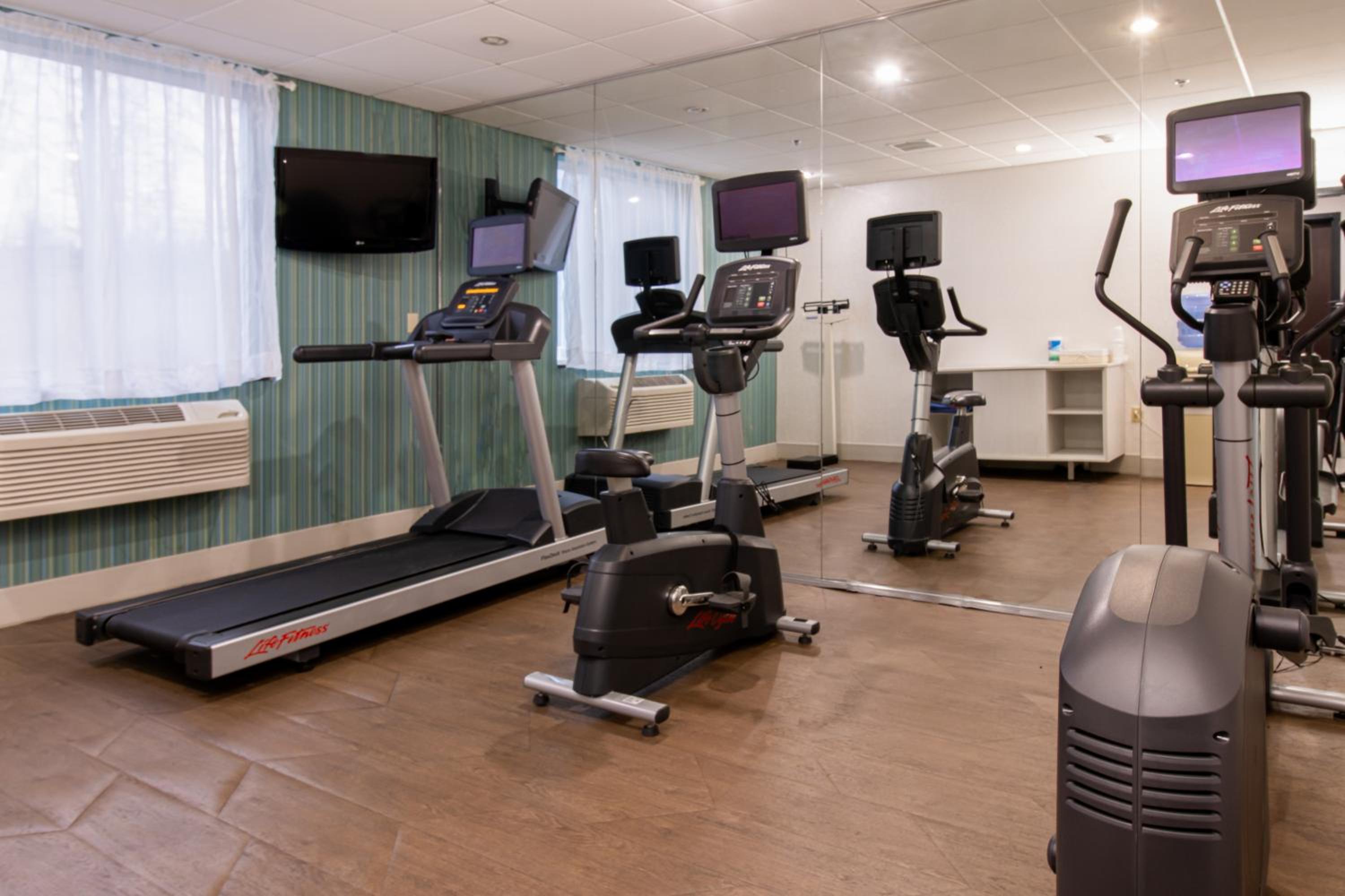 Guests can unwind in the colorful indoor pool and fitness room. Business center and laundry services are available for convenience.