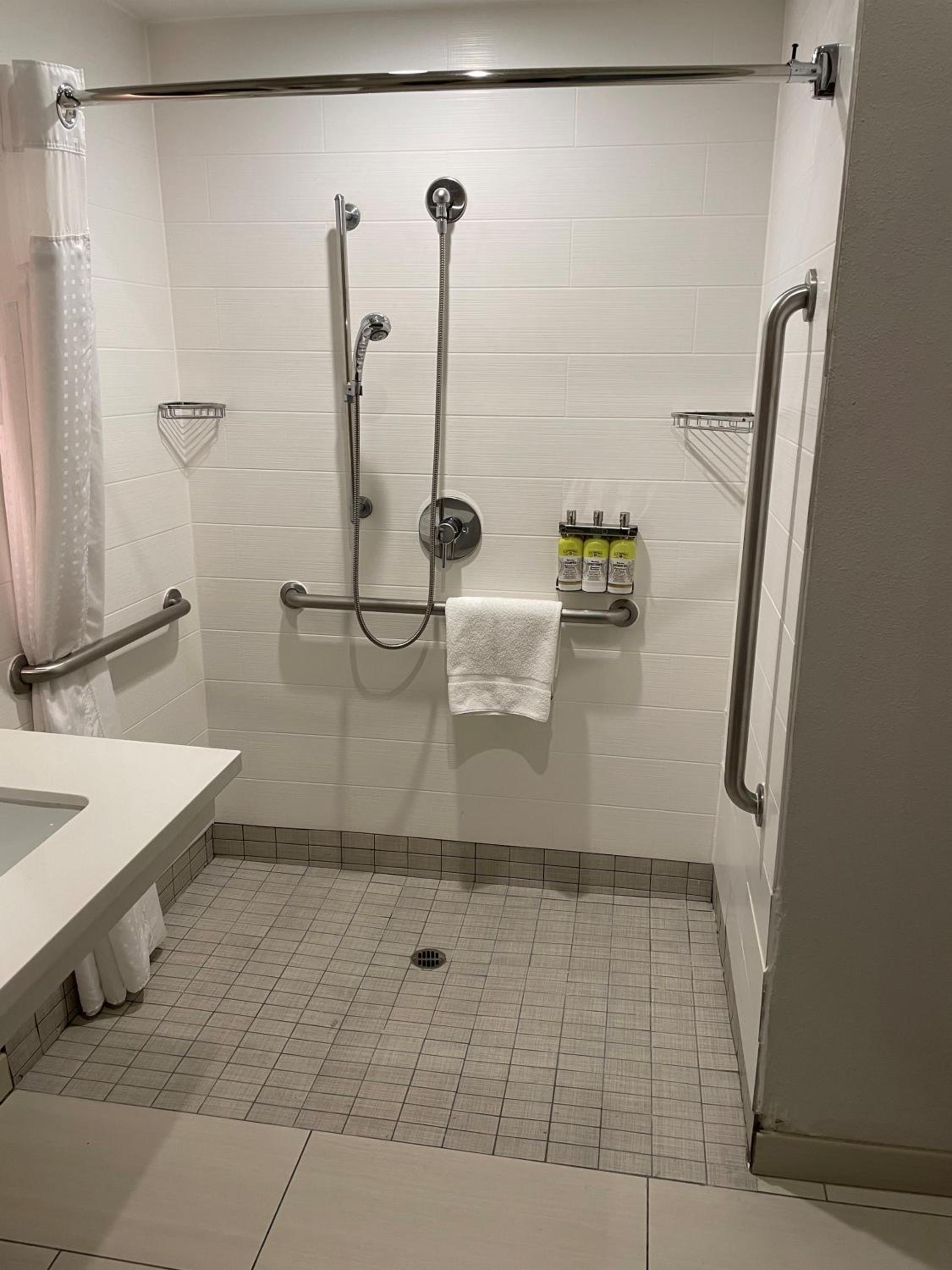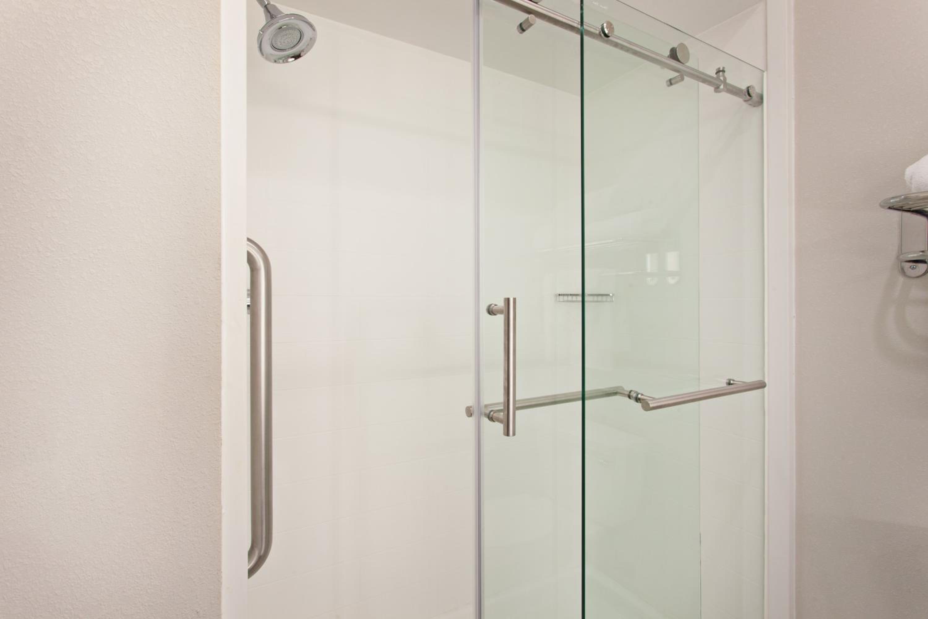 Our shower had a barndoor style enclosure but there was no handle on the door that slid.