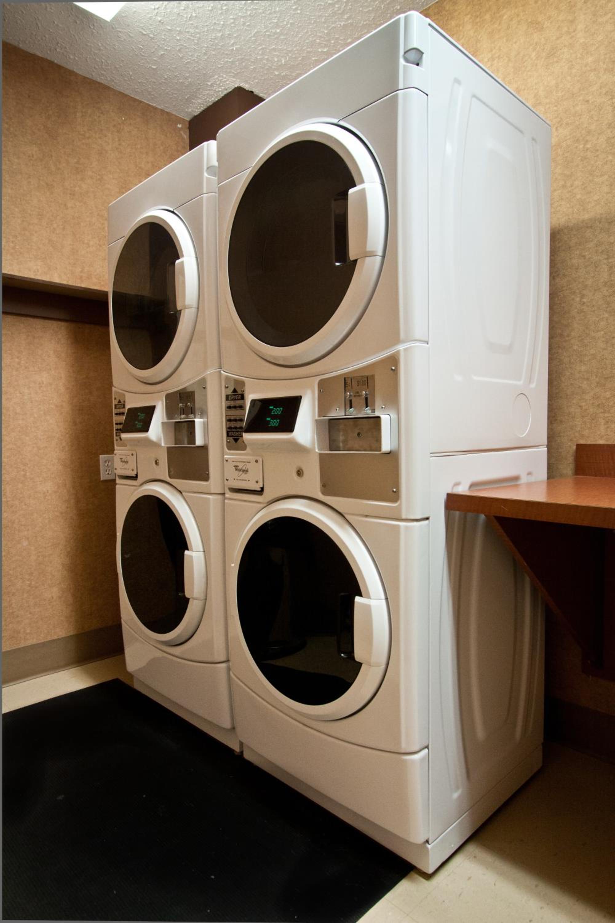 There was never any staff at the desk. I had to phone from the lobby to get someone to come to the desk. My room came with 4 hangers in the closet. I asked for 4 more and was told they didn't have any extra and each room only came with 4. The ice machine on my floor was out of order for the 5 nights I was there. My bed was never made by the cleaning staff and the bathroom vanity and sink were not cleaned daily.