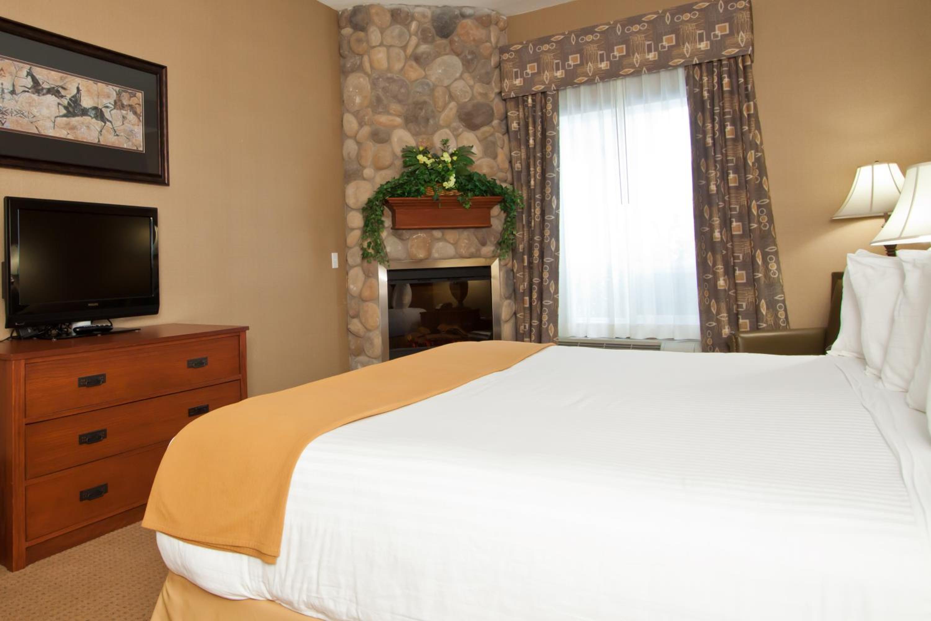Experience fun and relaxation with our indoor pool featuring a waterslide and hot tub. Stay in style in our all suites rooms, each equipped with a 48-inch flat-screen TV for your entertainment.