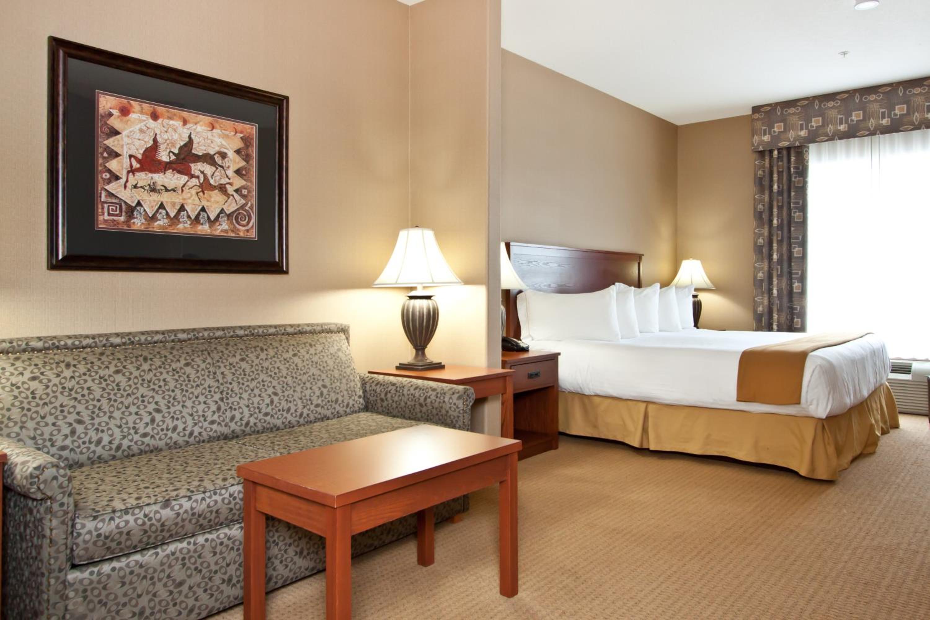 Enjoy the convenience of a microwave, fridge, and coffee maker in every room. Work comfortably at the desk, and unwind in the cozy seating area. Take advantage of free WiFi, gym, and business center access.