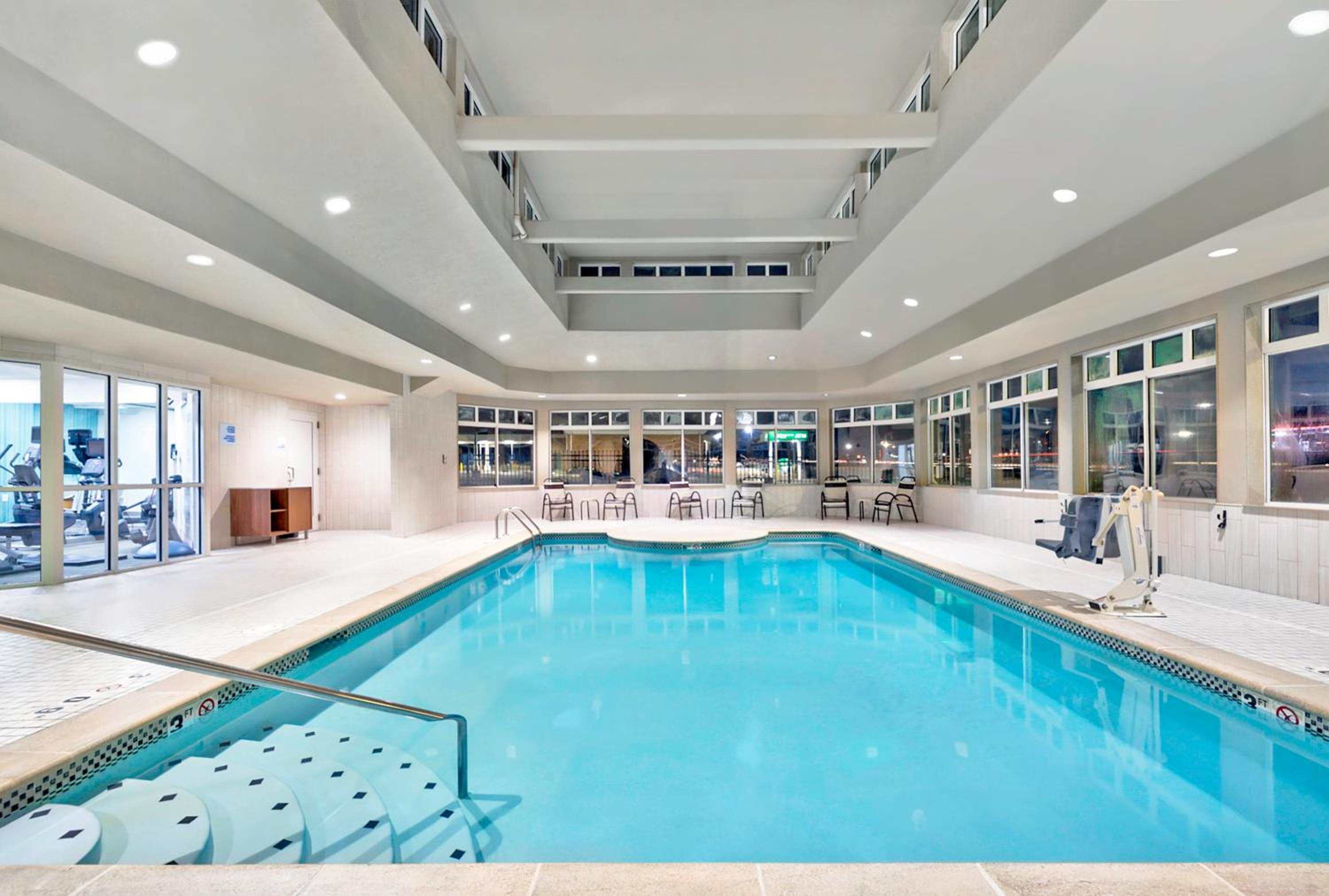 Each room at the hotel is equipped with free Wi-Fi, cable TV, a refrigerator, a microwave, and a coffee maker, ensuring a comfortable stay for every guest. The indoor pool provides a relaxing spot to unwind after a busy day.