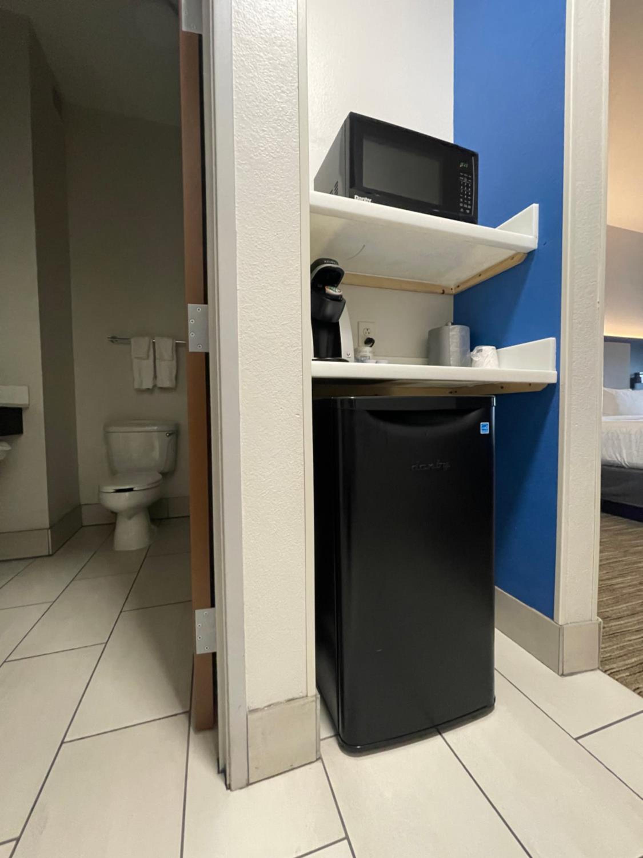The room was clean and the front desk guy provided us with extra towels when asked.