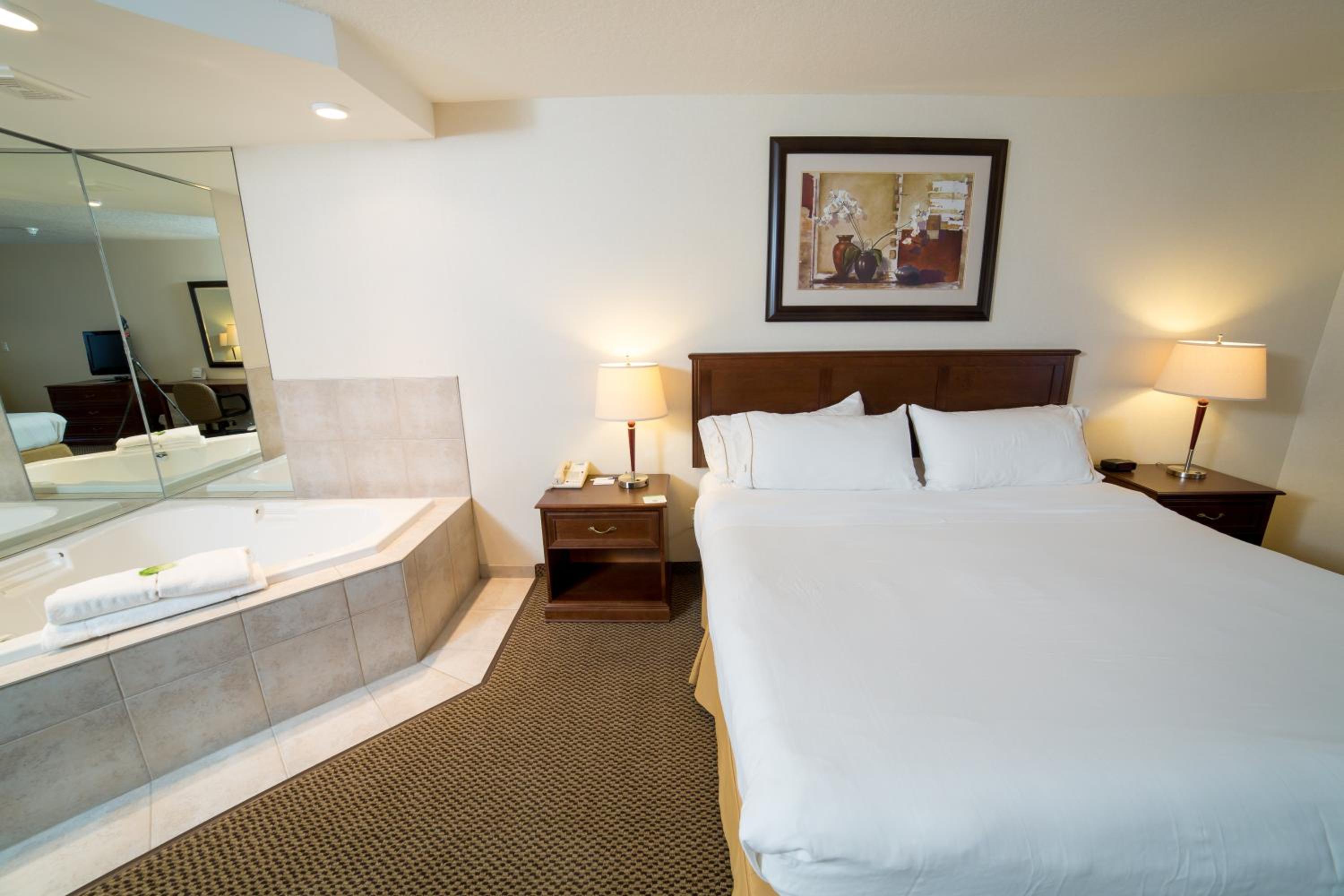 Indulge in relaxation at our Drayton Valley Hotel with a soothing hot tub, perfect for unwinding after a long day of adventures.