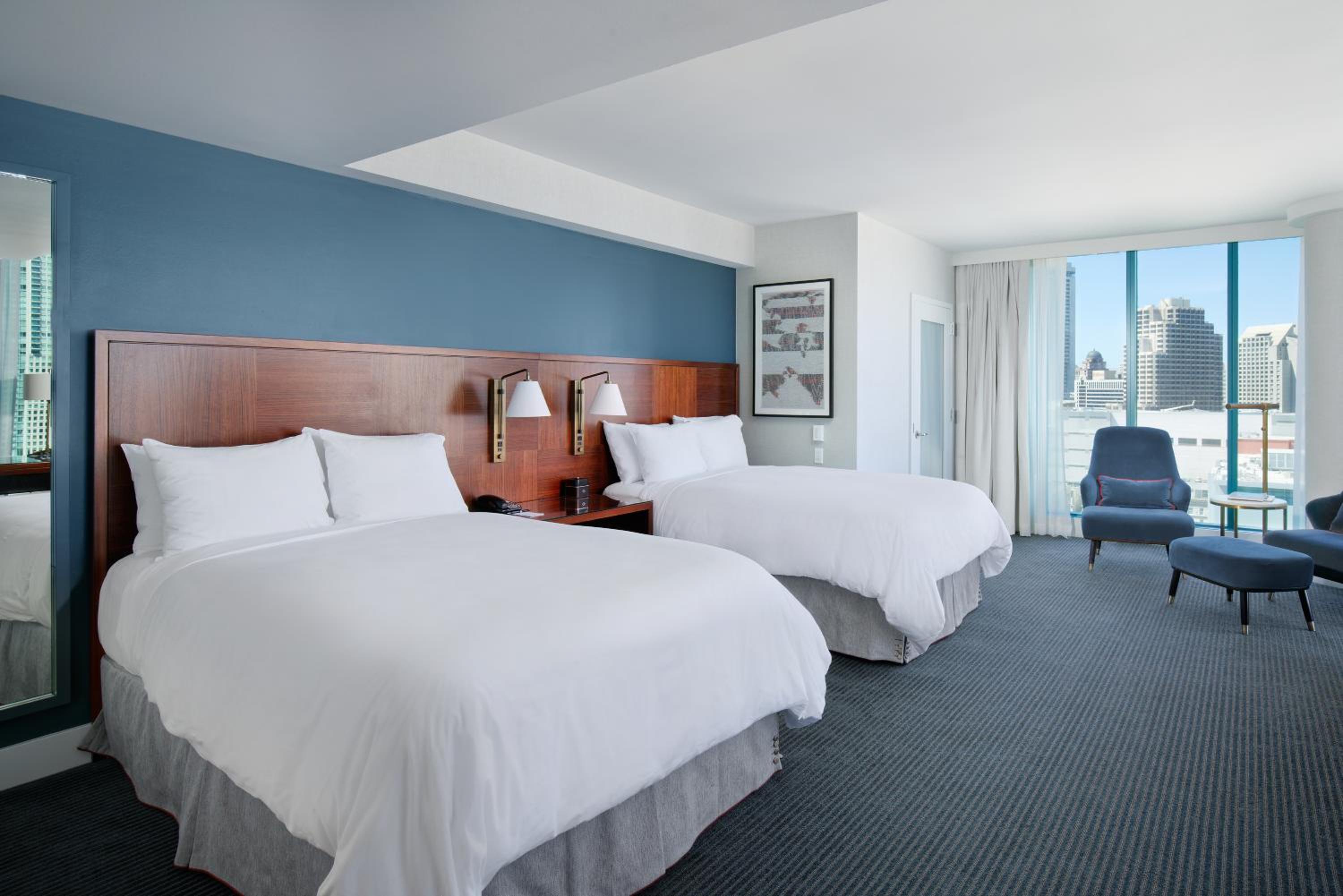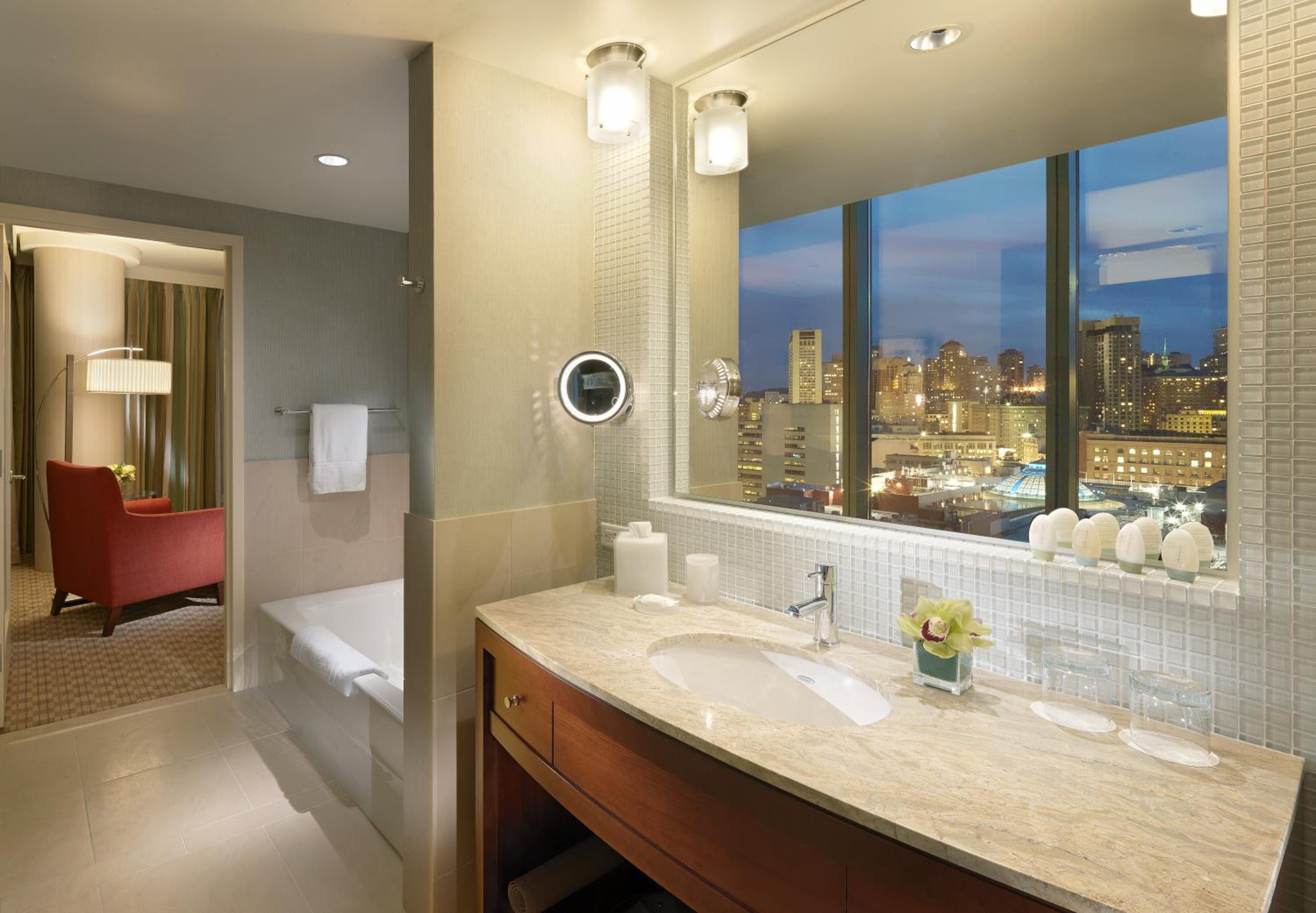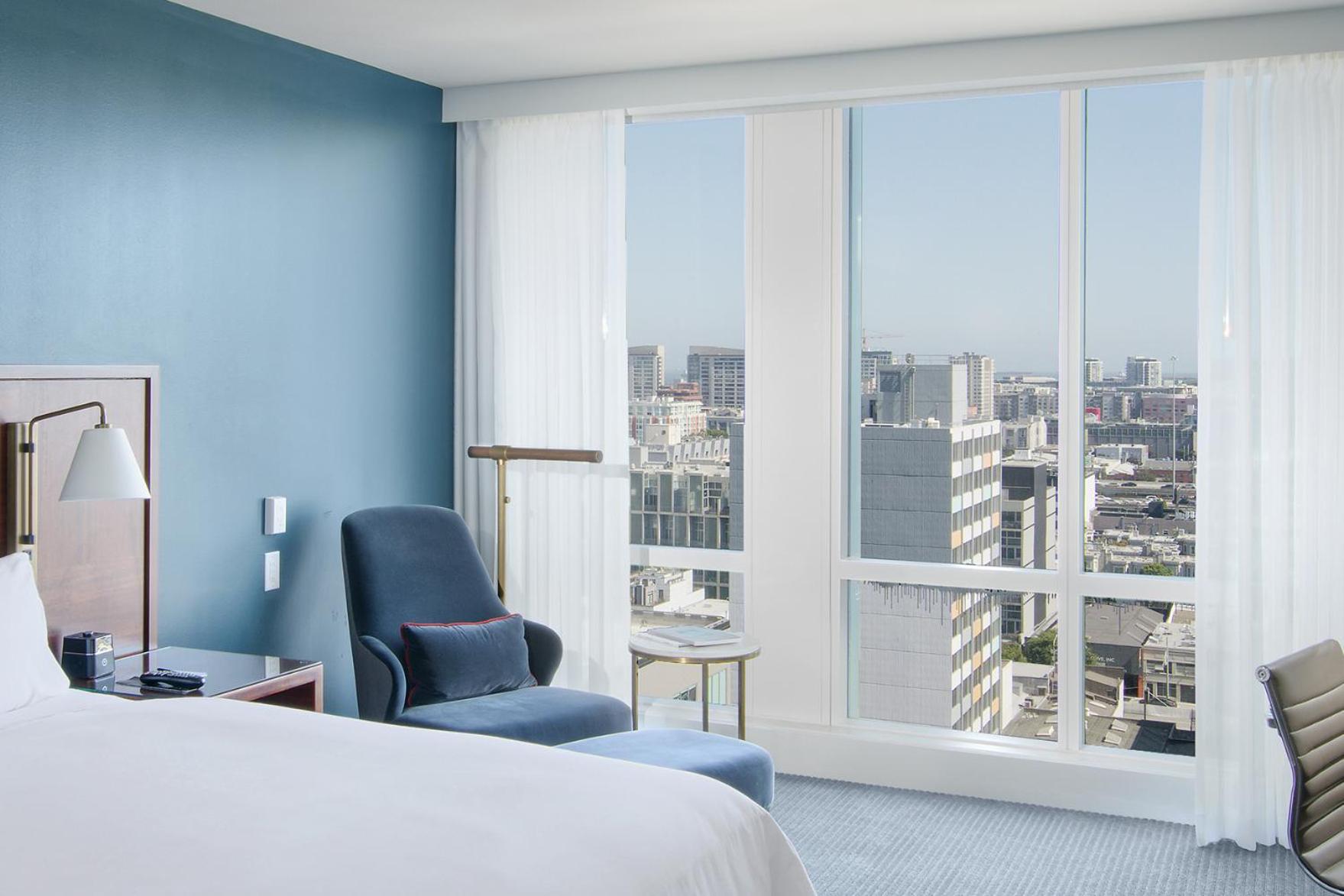 The InterContinental San Francisco offers spacious rooms equipped with the latest technologies, flat-screen TVs, and in-room minibars. Enjoy modern amenities such as iPod clock radios and coffee machines for a comfortable stay.