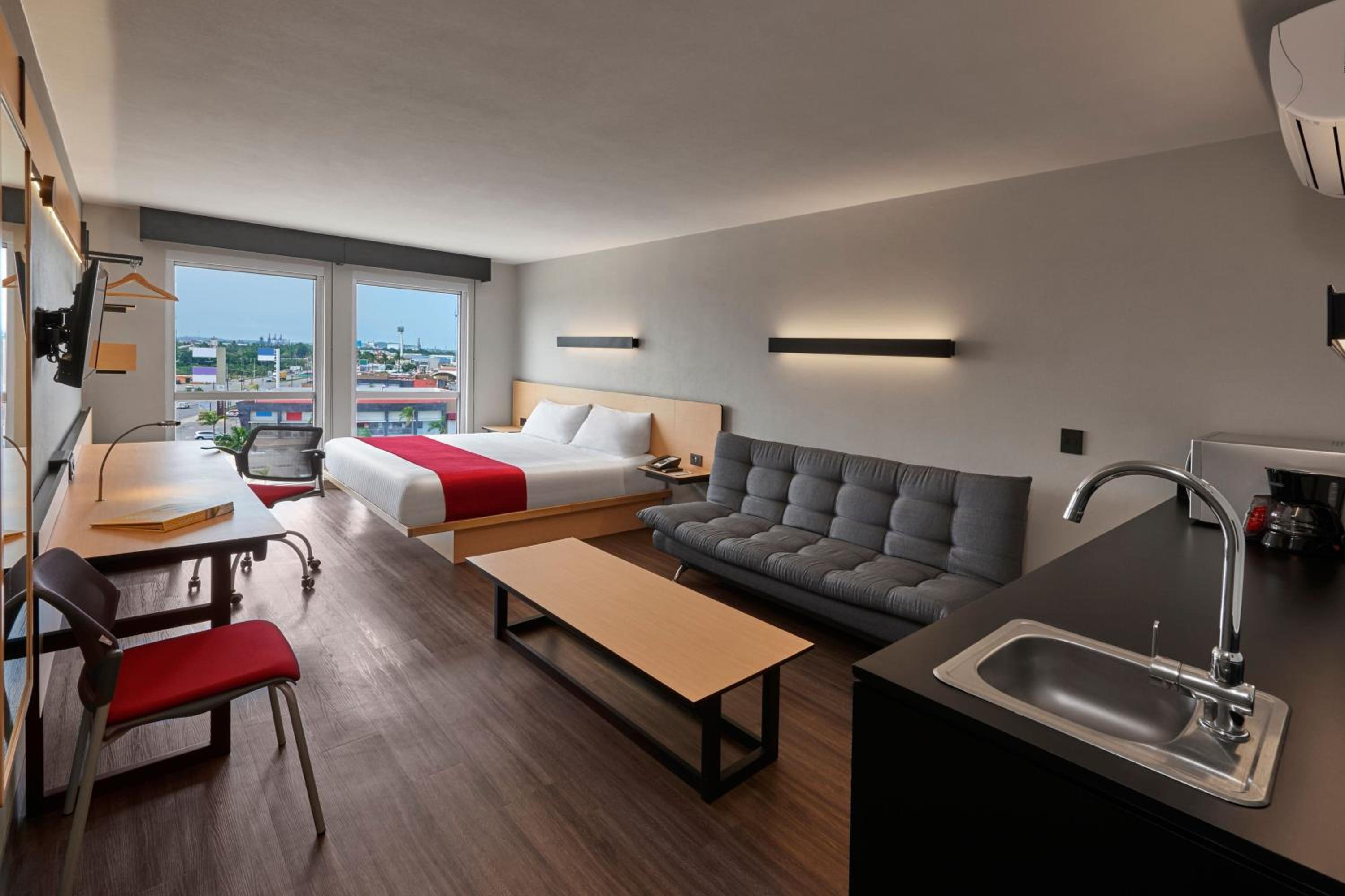 My first time in Chihuahua city and this property is ideal for shopping and dining. There is this area called Distrito Uno and it has everything you want for dining options. The hotel was clean, great location, front desk was helpful. My only negatives are that there is no mini fridge in room,and safe in room. Also the TV appeared to be a smart tv but we could not stream any Netflix or other apps on the TV. Otherwise, cleaning service was great, location was awesome and would stay there again. Also the two securities guards are very nice men and gave great recommendations to local restaurants that are yummy. Tacos, etc.