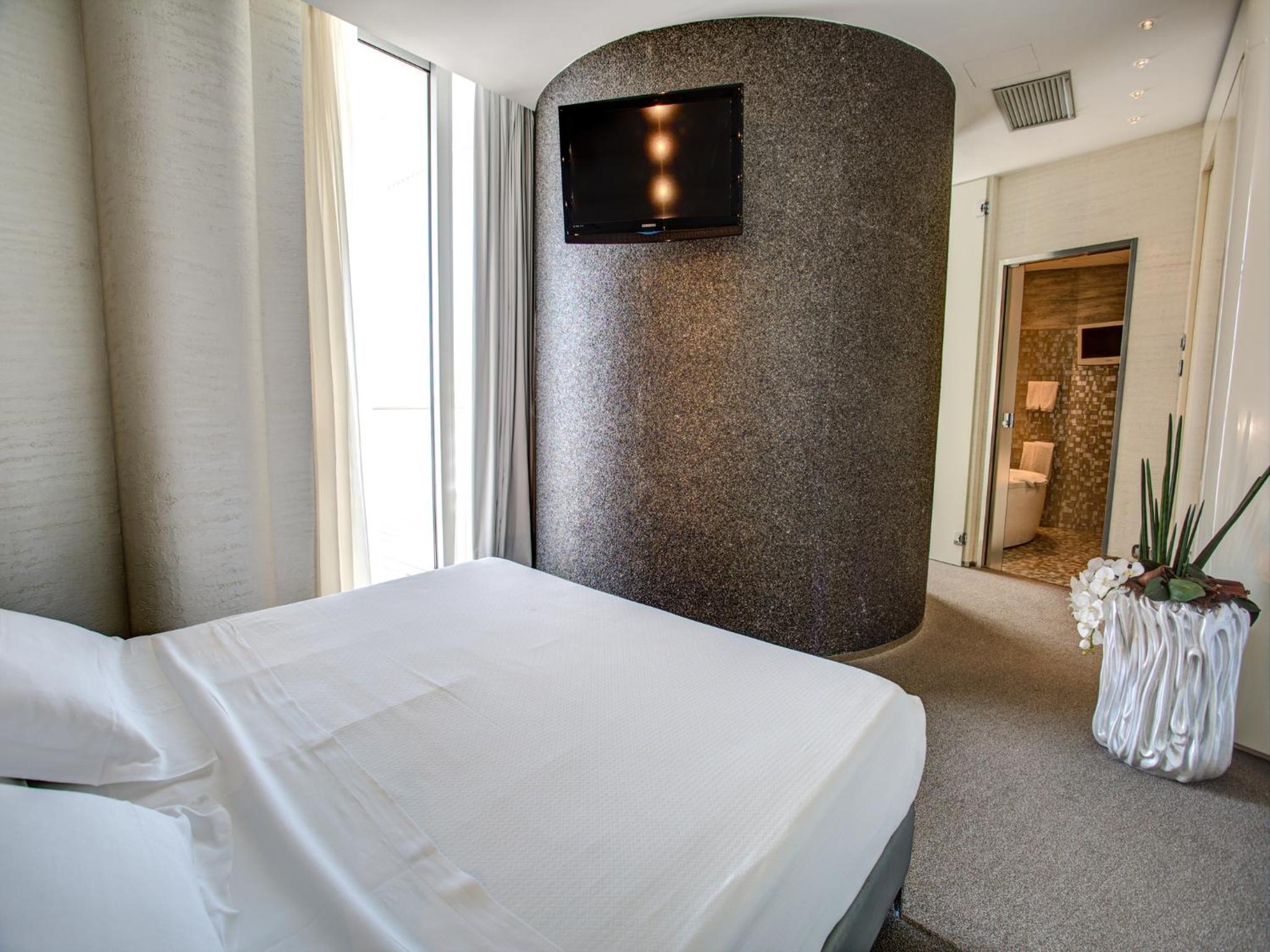Experience chic design and modern amenities in every room, including free WiFi, Sky channels, and a pillow menu. Upgrade to a suite for breathtaking sea views, a private terrace with a hot tub, and a steam cabin for the ultimate relaxation.