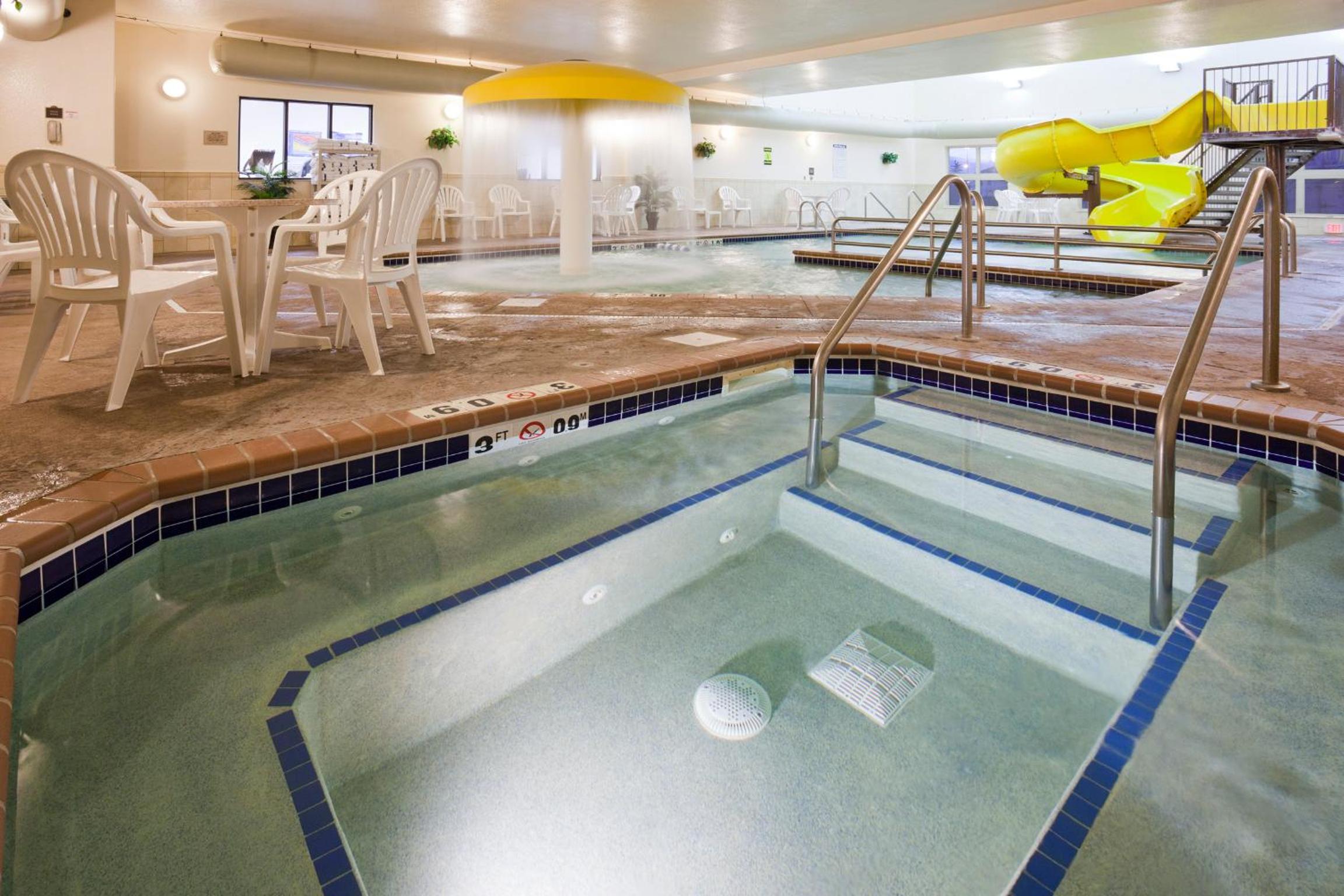 Enjoy a buffet-style breakfast, indoor pool with a waterslide, free Wi-Fi, flat-screen TV, microwave, and refrigerator in every room. Relax in the hot tub, stay active in the fitness center, or unwind with a movie from the hotel's library.