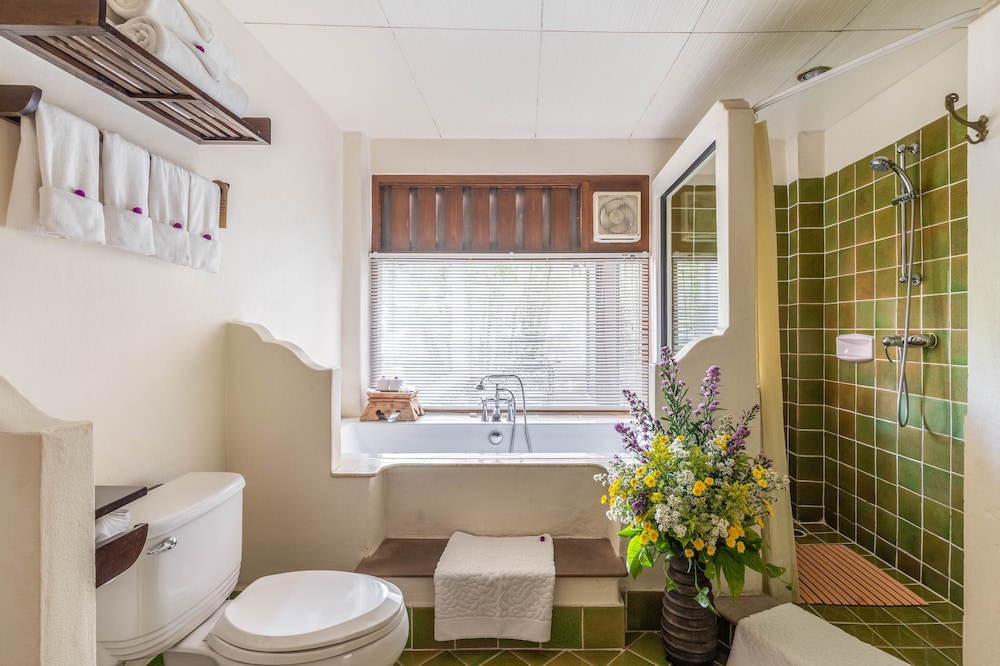 What a lovely place to stay and relax in Chiang Mai! They lay it on thick with the background "massage music", portraying a much calmer vision of Thailand than reality which is aimed squarely at the tourists, but didn't do any harm. The gardens are lush and well kept (a big factor in choosing this place), and although our Deluxe Room didn't have a view at all, it did have very large windows with tastefully grown trees/hedges outside so it still felt tranquil. Rooms are very spacious (I hate small rooms, so this was perfect), and even the bathroom is big.