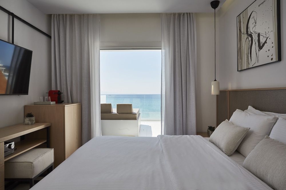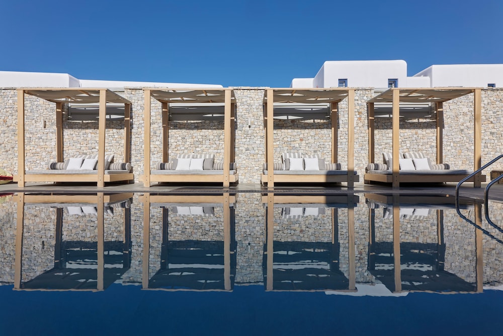 Indulge in the ultimate seaside sanctuary at Kosmoplaz Beach Hotel in Mykonos, where luxury meets relaxation.