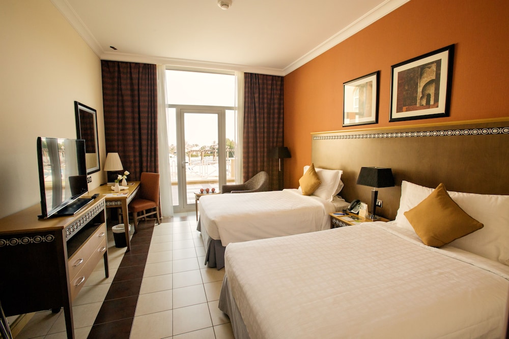 Immerse yourself in luxury at the Al Jahra Copthorne Hotel & Resort. With 2 outdoor swimming pools, a health club, and a steam room, relaxation is at your fingertips. Unwind in the bar/lounge or poolside bar, and indulge in international cuisine at Taima'a Restaurant.