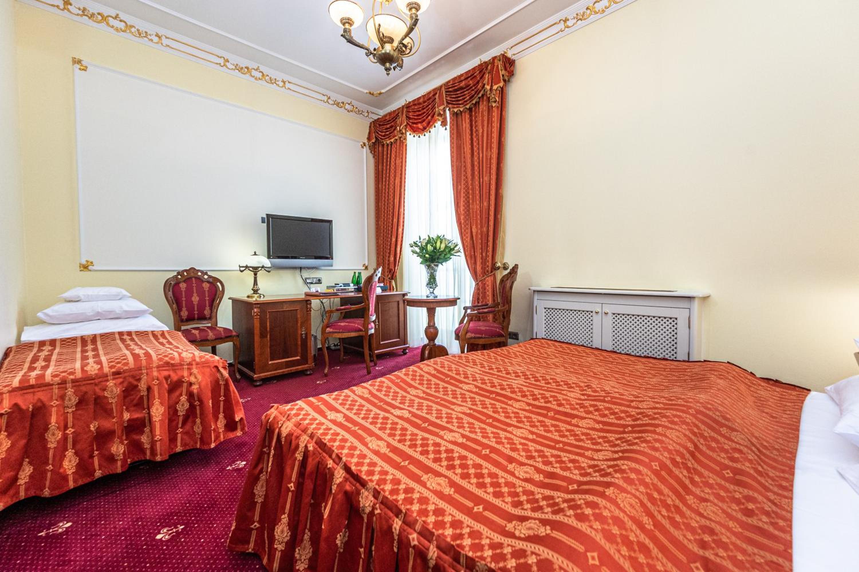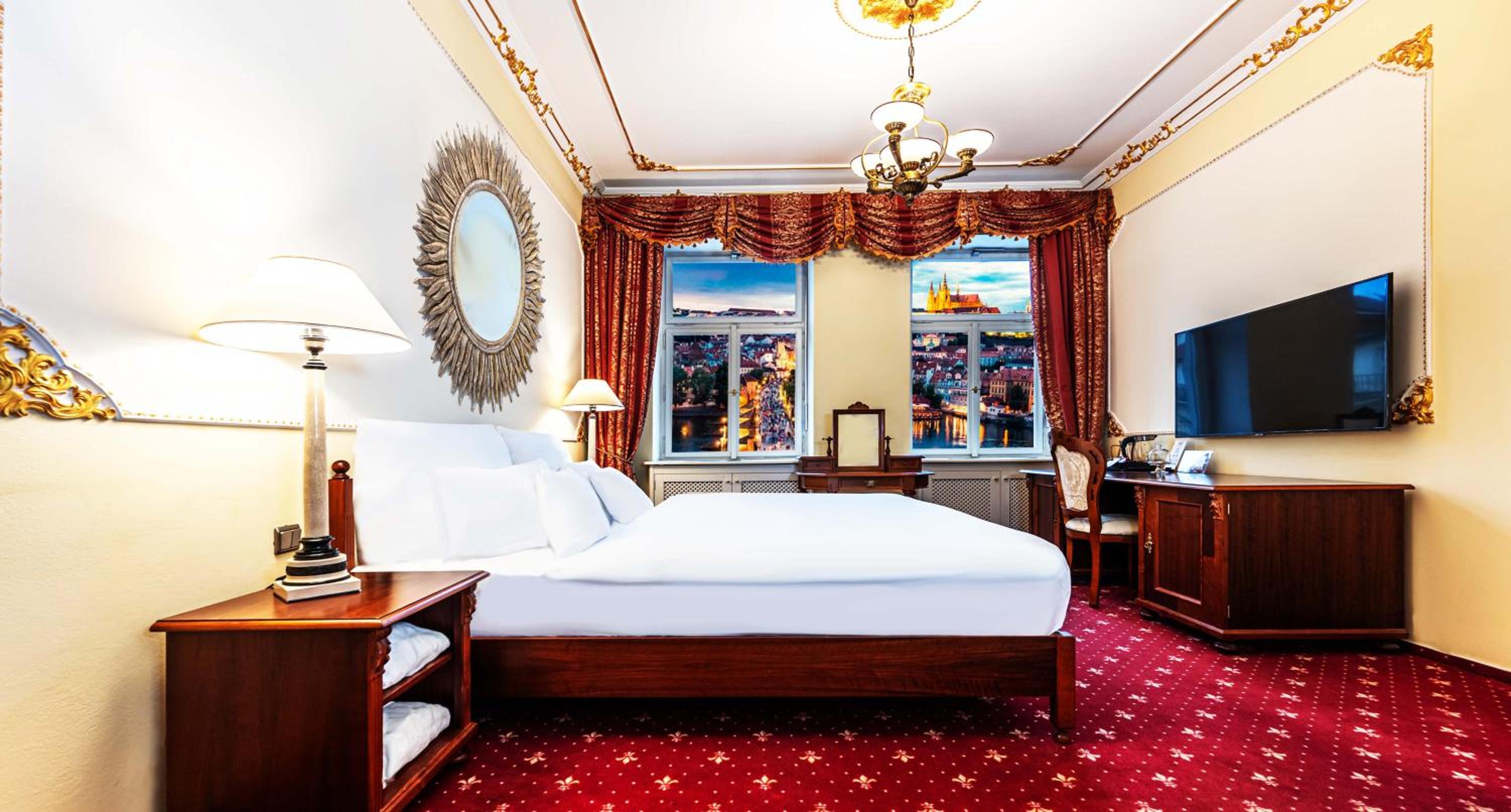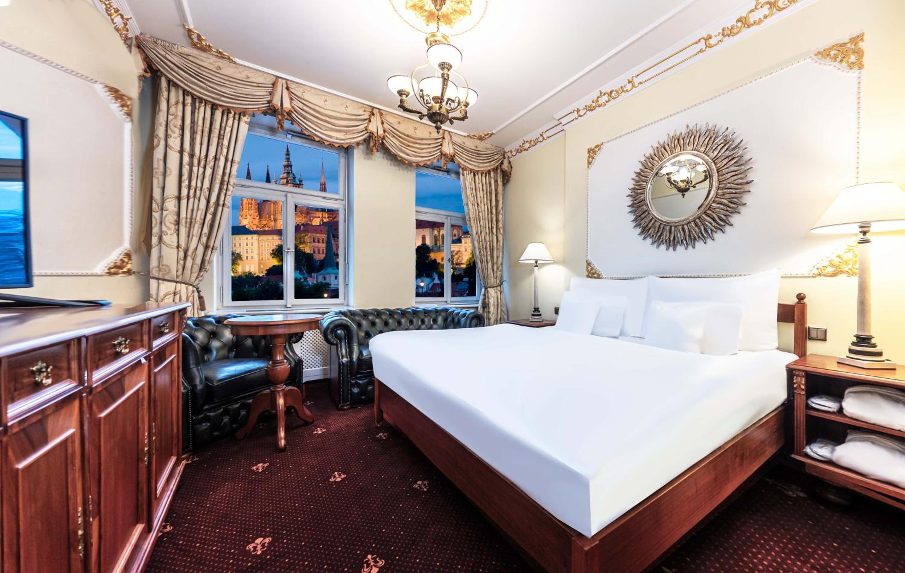 Indulge in 5-star luxury at Hotel General Old Town Prague, offering elegantly designed rooms with modern amenities including air conditioning, flat-screen TVs, and city views. Relax in comfort and style during your stay.