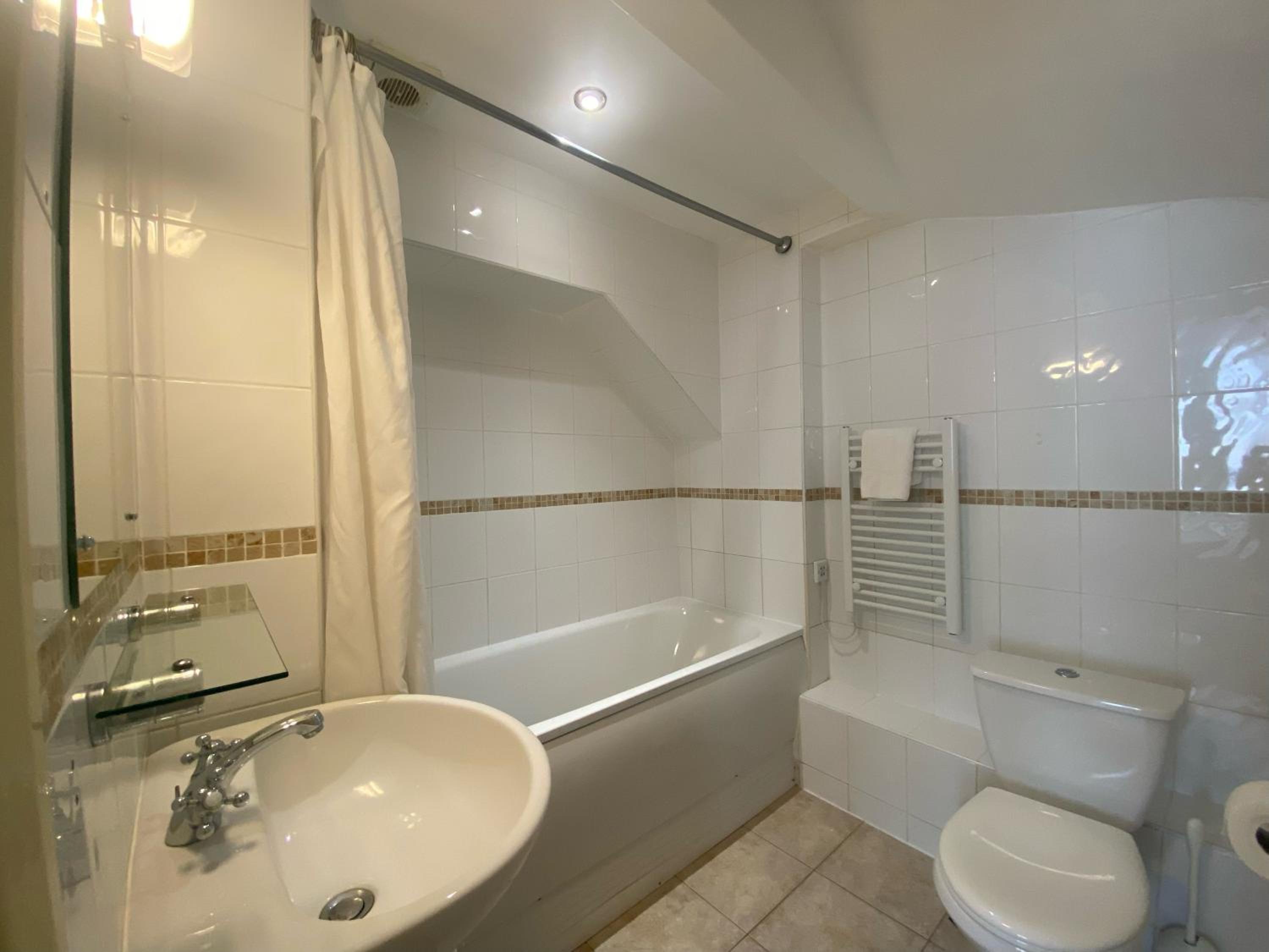 There was some dust on the light fitting and they do need a bath mat to stop you slipping on the floor.