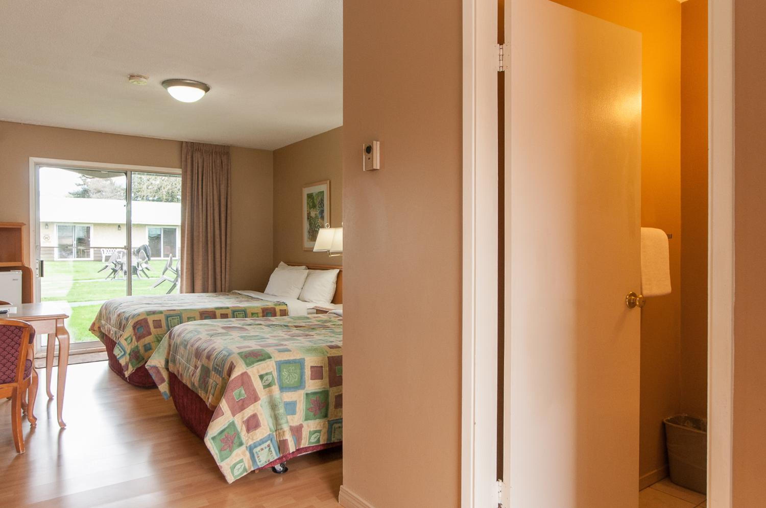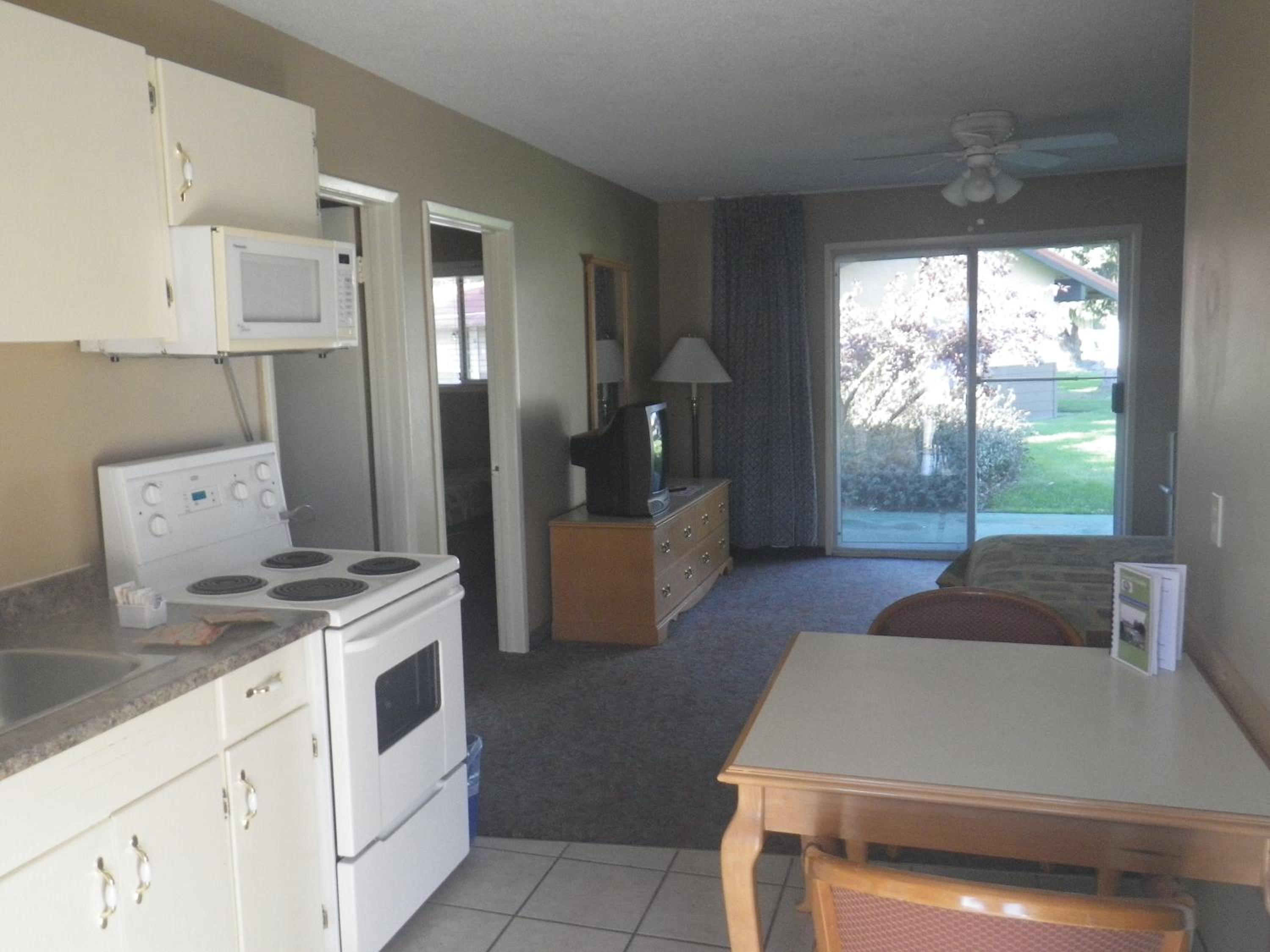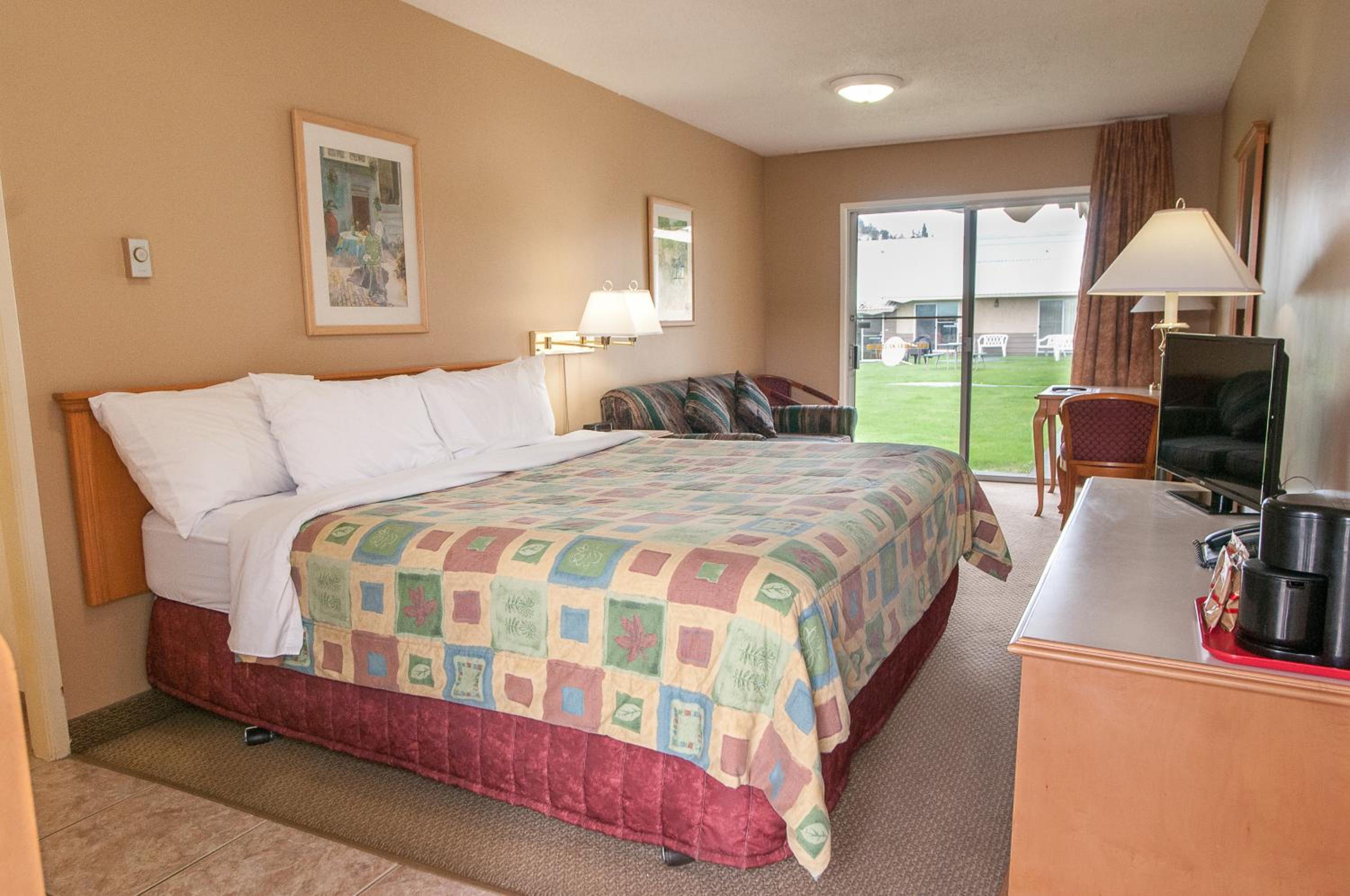 Each room at the resort features patio doors opening to the courtyard, along with amenities like Cable TV, free Wi-Fi, and a refrigerator, ensuring a cozy stay for guests.