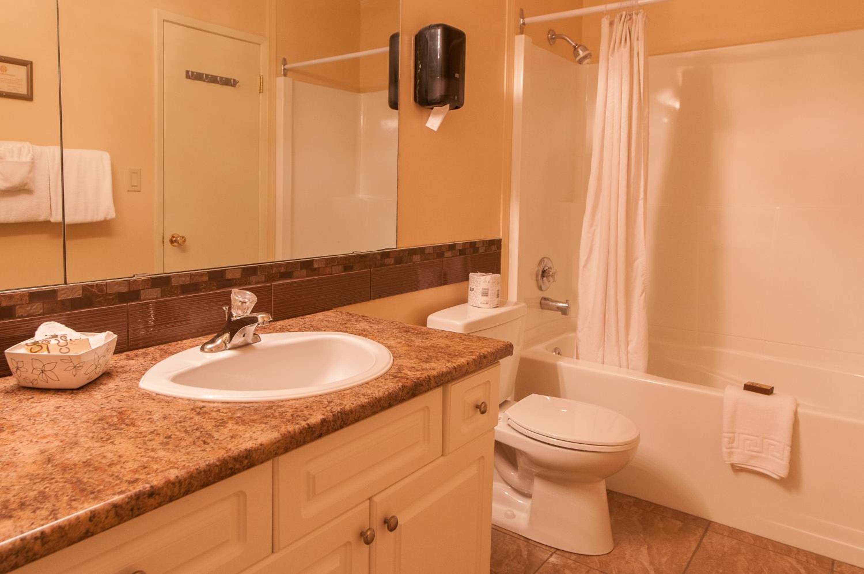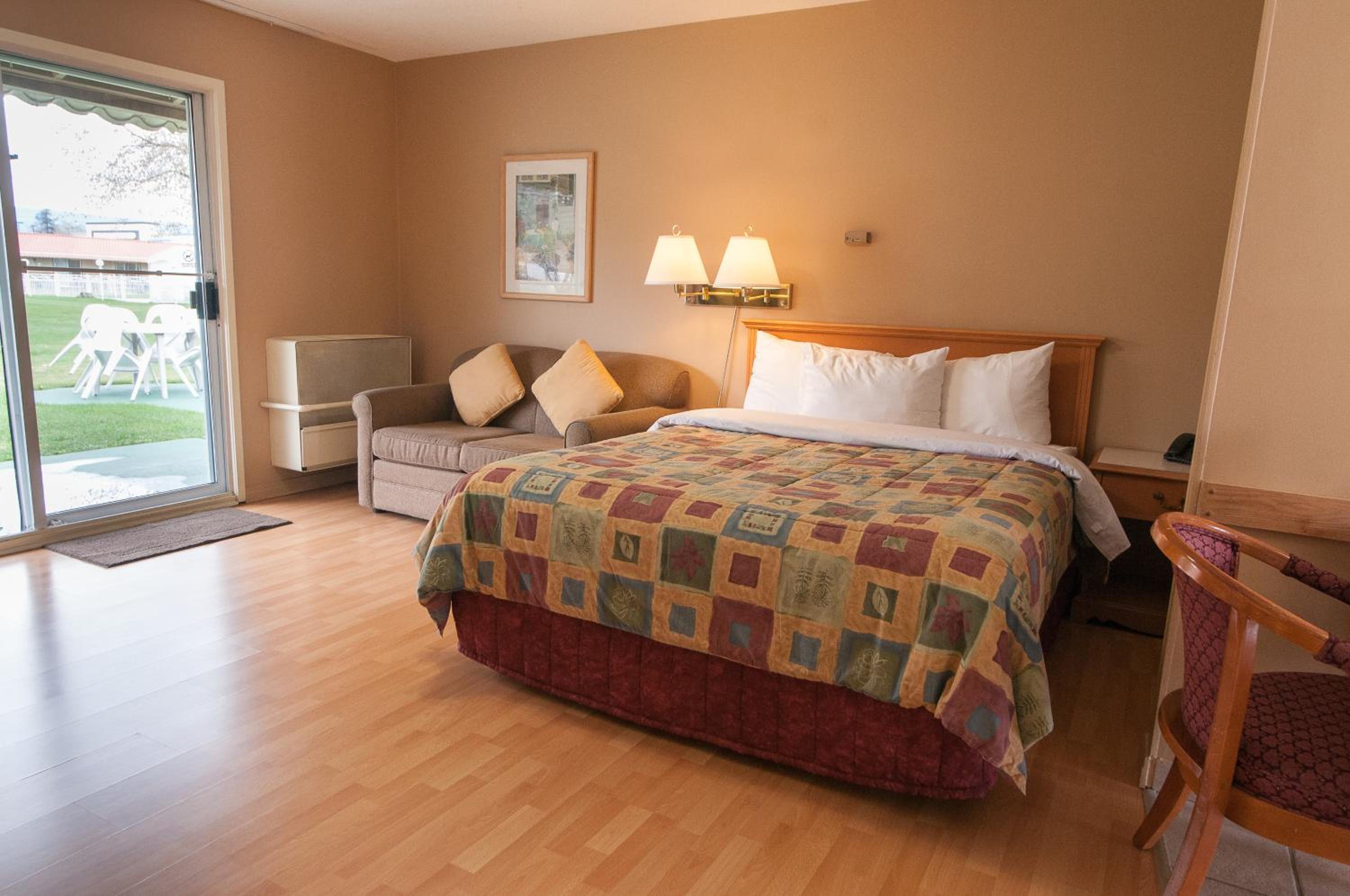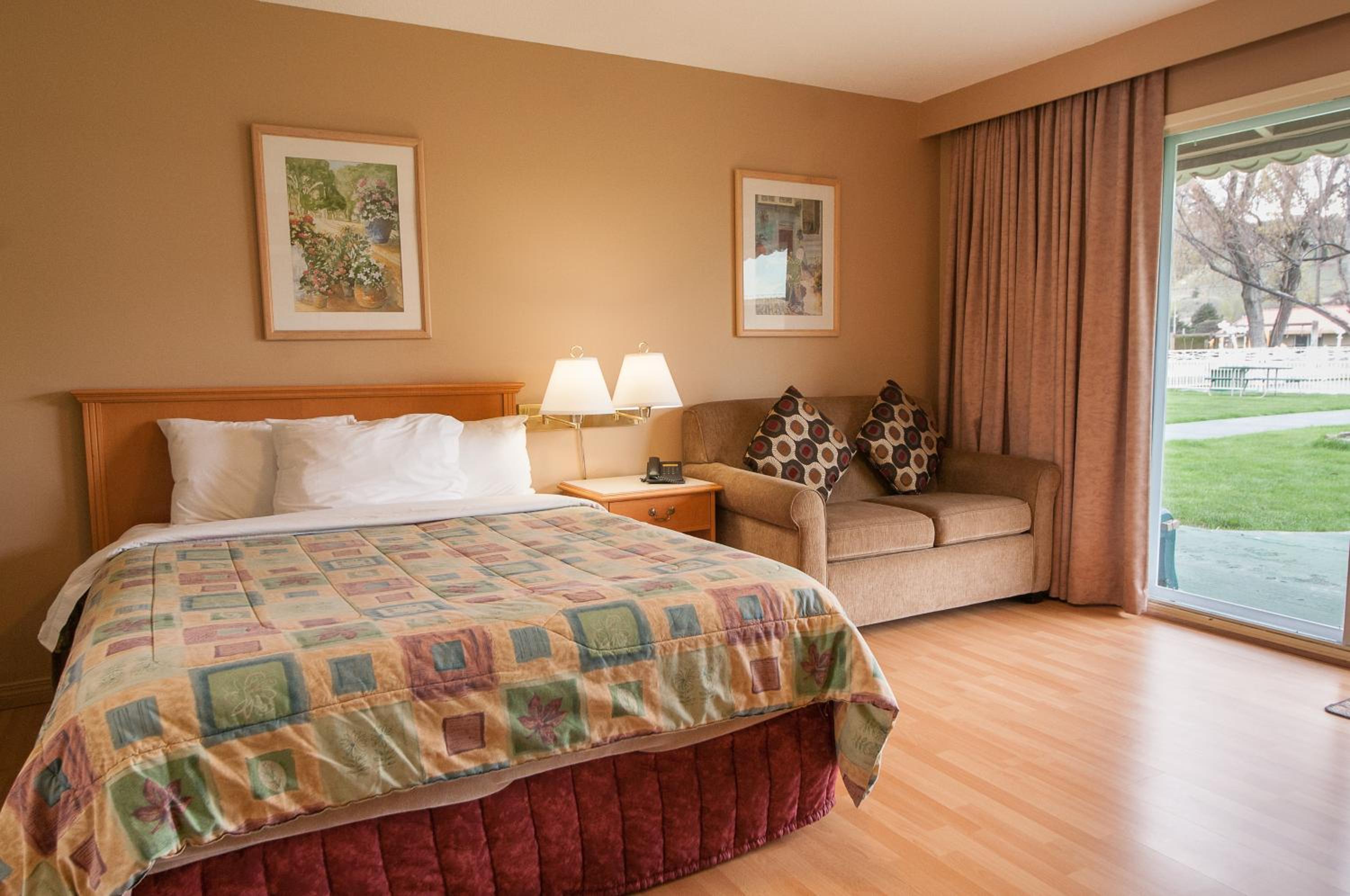 Situated on 5.5 acres, Okanagan Resort boasts 2 courtyards, indoor and outdoor pools, and a putting green, providing a serene and recreational atmosphere.
