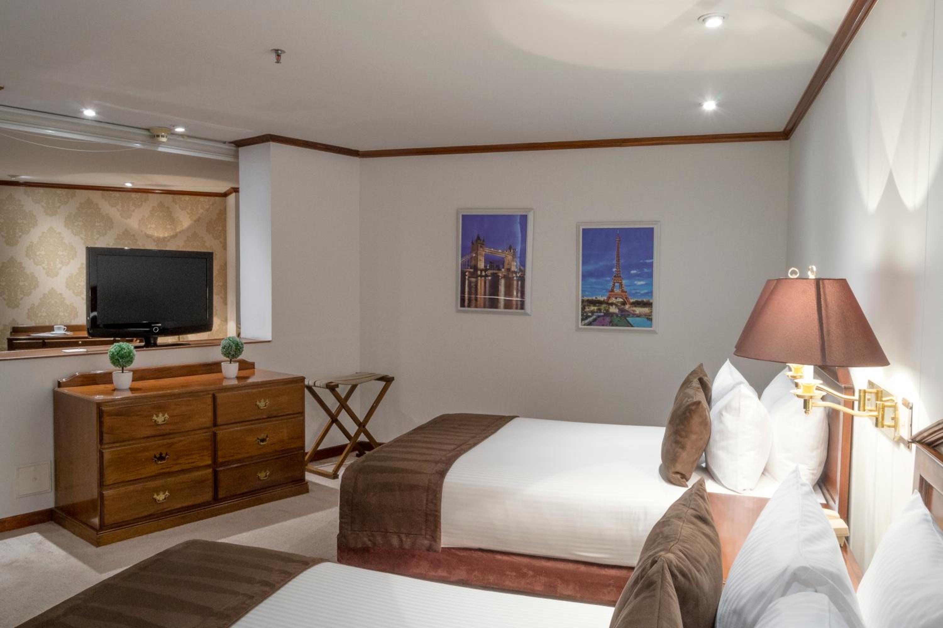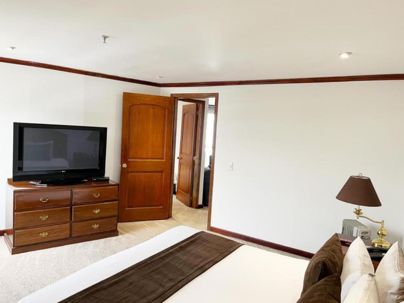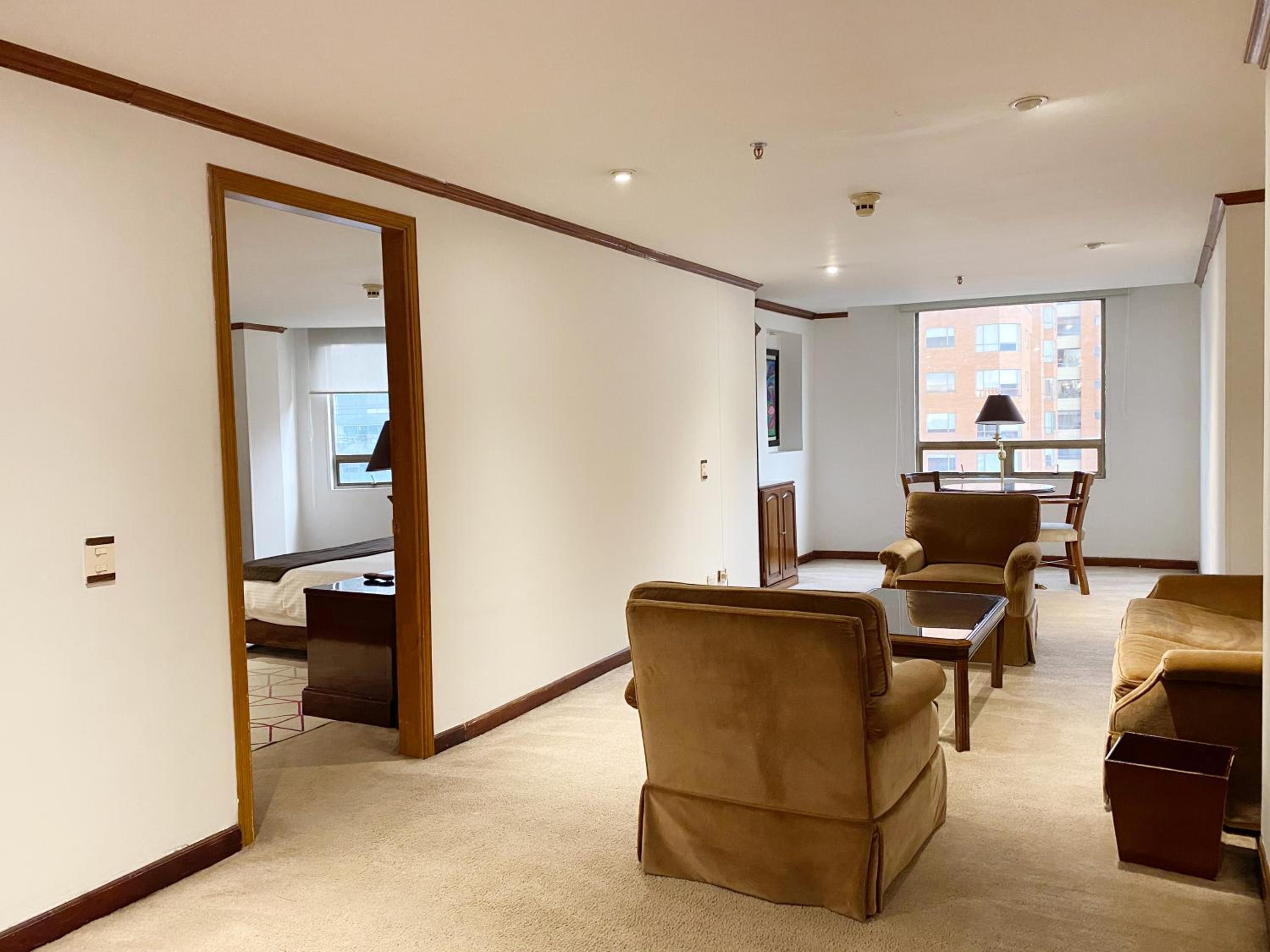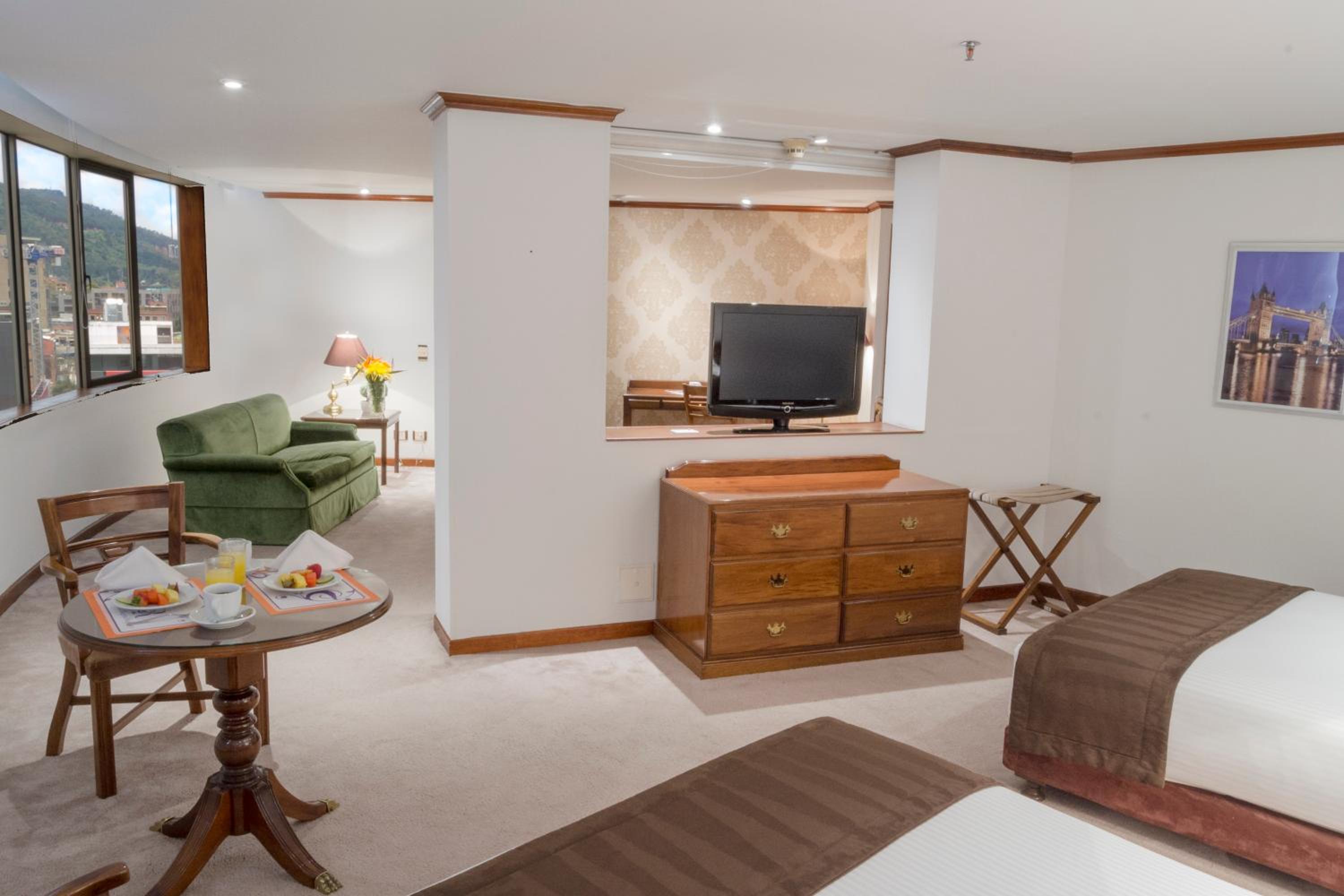 Luxurious Accommodations - Bogotá Regency offers elegantly decorated rooms with dark wood furniture and modern amenities, providing a comfortable and stylish stay for guests.