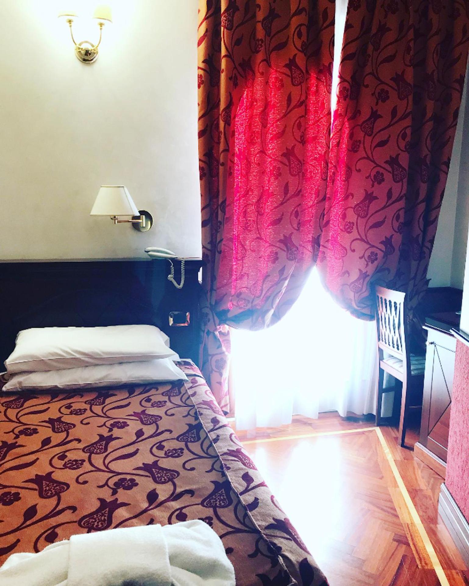 Room is very small with steps in and out of all areas which are very hard to see! No room for 2 to use wardrobe, safe not fixed so if you use it you can just lift it out, no room to out any tea & coffee facilities, you have to live out of your suitcase and edge slowly around the bed to actually get in! It is a shame as it isn’t the cheapest option in Rome and as a 50th birthday present it was a disappointment. Yes I informed hotel and EasyJet straight way but nothing either could do… I travel quite a bit and I live to give positive feedback! Unfortunately I couldn’t with this hotel.