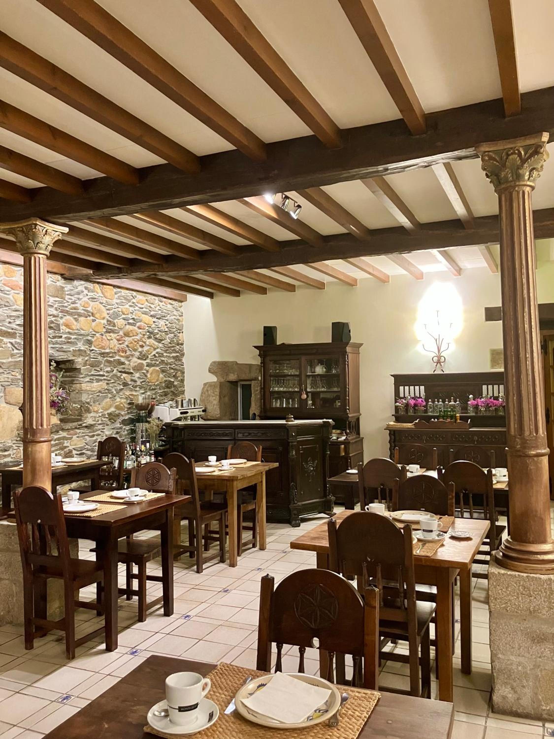 Step into our rustic rooms offering picturesque views of the Galician landscape. Unwind in our library by the fireplace or take a refreshing dip in the swimming pool. Enjoy the peaceful ambiance and authentic charm that our hotel provides.