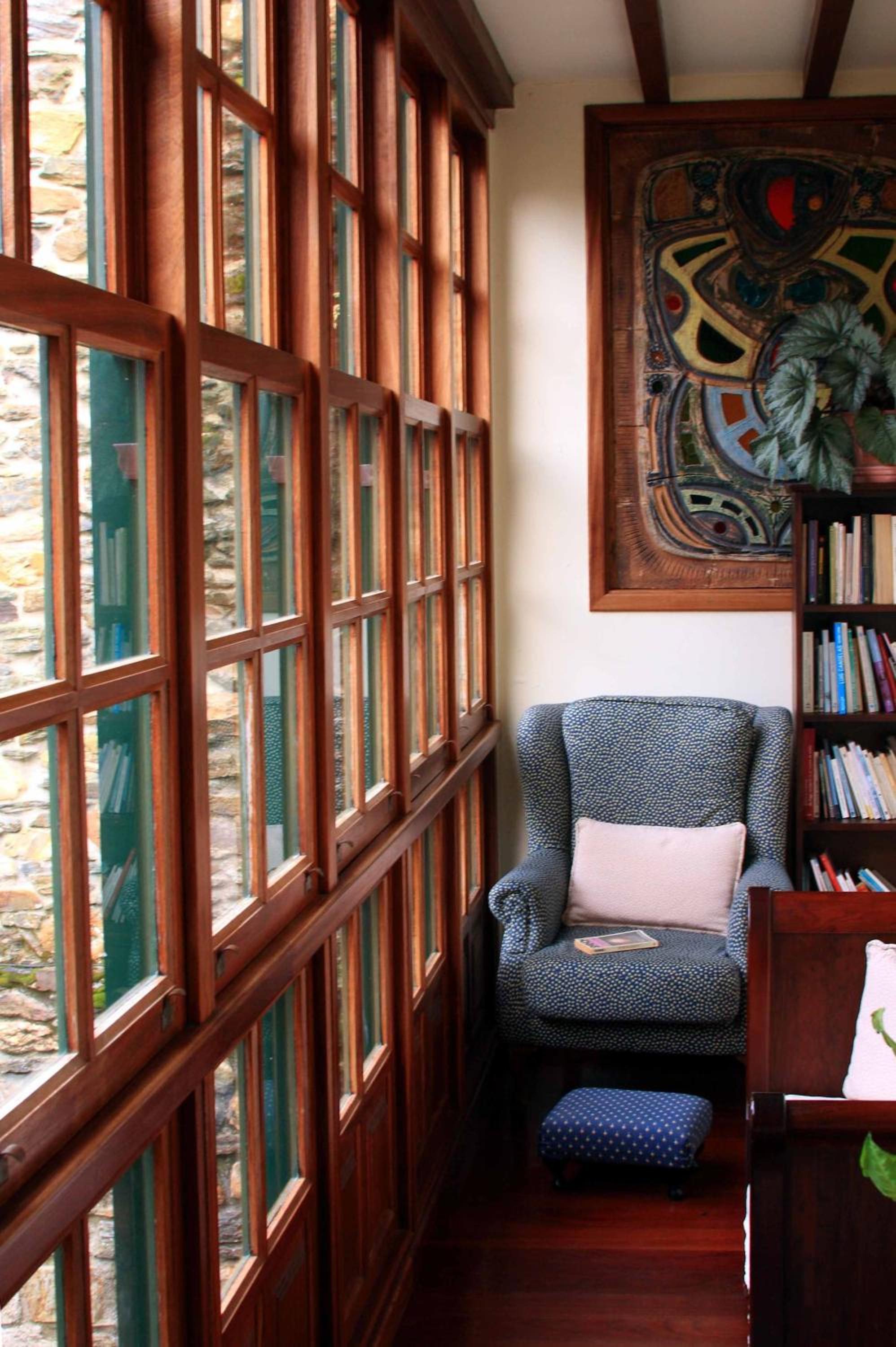 jardí, piscina, sala biblioteca amb bons llibres