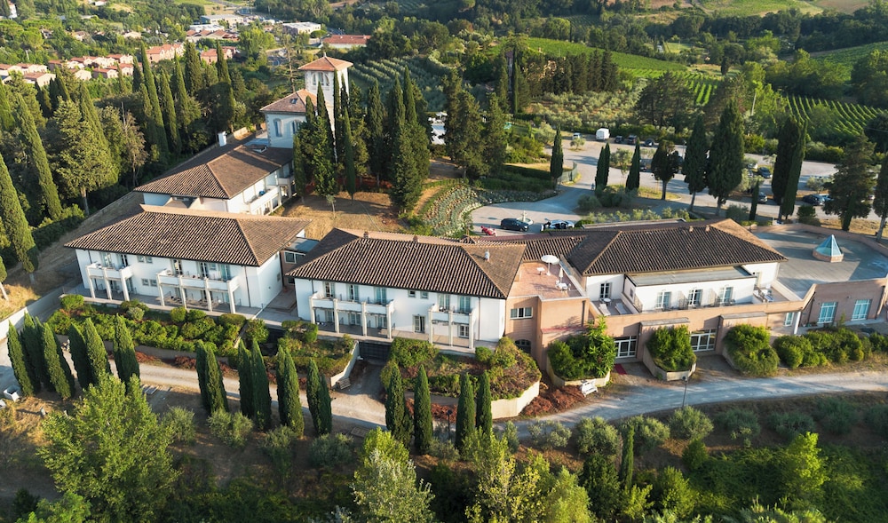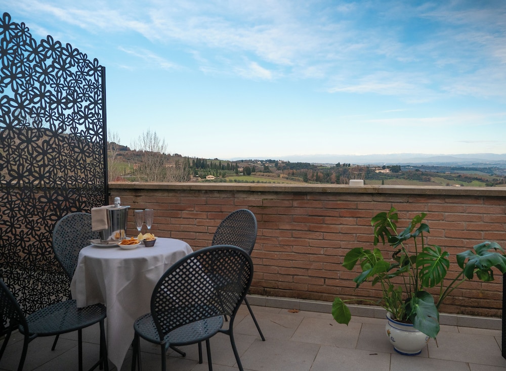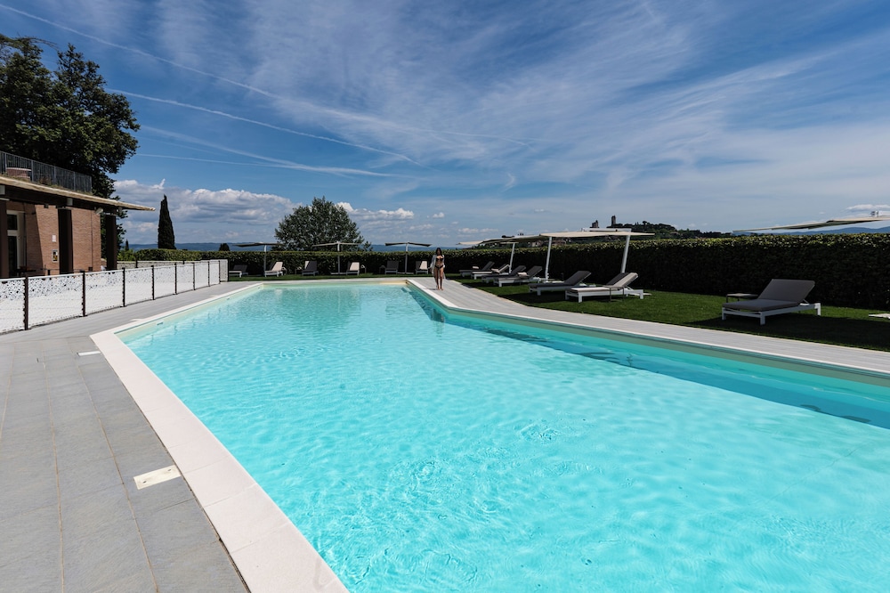Hôtel récemment rénové avec goût, grands espaces, belle vue sur la campagne Toscane et la ville de San Gimignano. Grande piscine avec transats confortables et parasols. Personnel serviable. Belle terrasse avec un service bar et concert intimiste