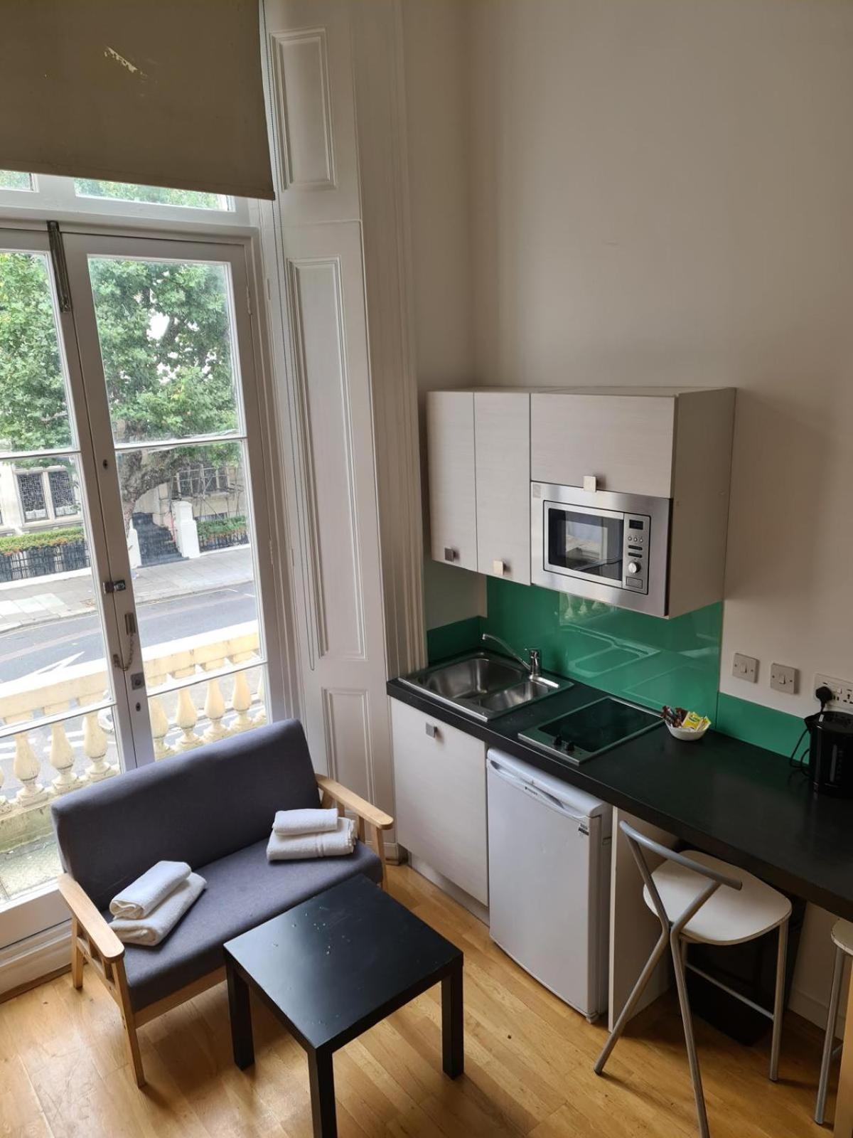 Lovely from the outside and even reception area nice. Good location to tube and hyde park all in walking distance. Kitchen amenities okay.