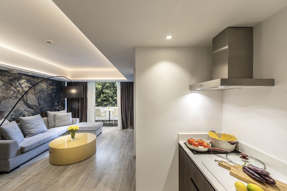 Huge suite with kitchen / diner as well as big bedroom. Very quiet and spotlessly clean. Slightly outside town but quick taxi ride. Chose hotel because of free and easy parking for hire car.