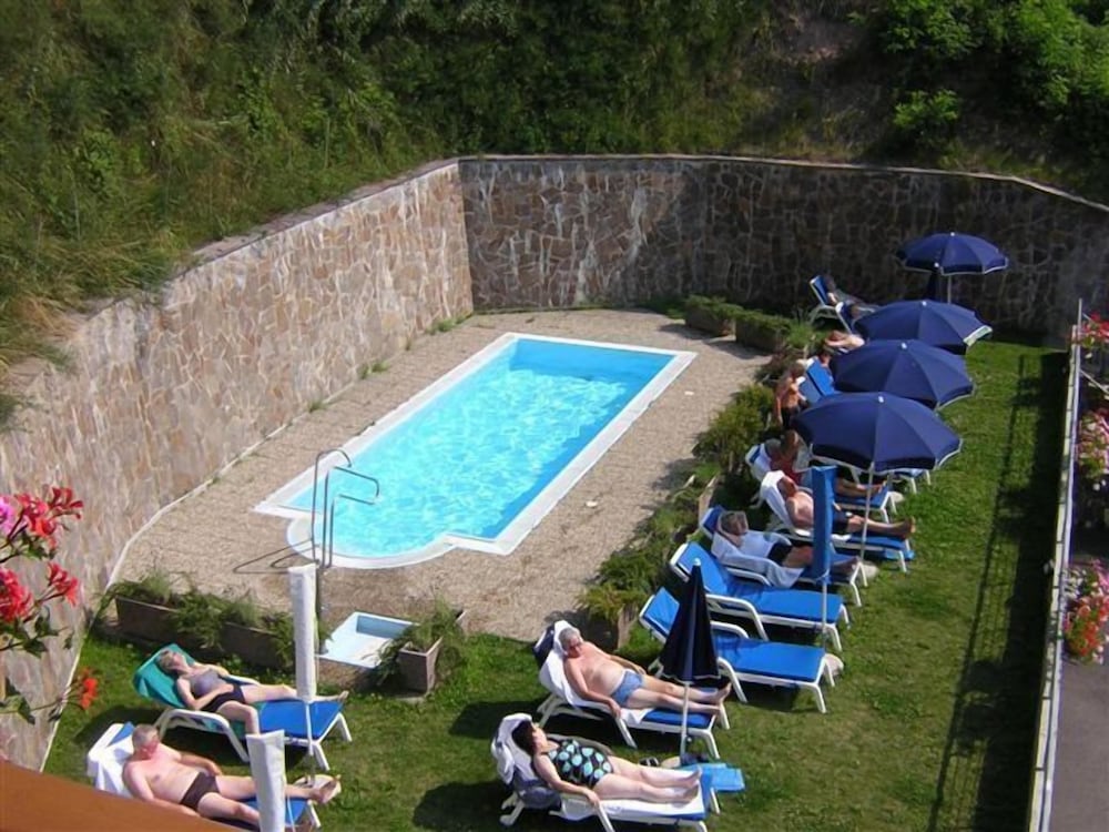 Easy to access on the main road. A very lovely atmosphere with all the locals gathering in the downstairs bar for coffee in the morning or drinks in the afternoon. A very friendly and helpful welcome from all that work there. The breakfast was of a high standard, normal continental as you would expect for hotels in Italy. The room was lovely, bed very comfortable and the bathroom was fine. The pool was closed when I arrived on the 15th May as it had been cold up until that day, but the sauna and wirlpool were available, at a cost of €10 per hour. I dudbt use them so cant review. I would recommended this lovely little gem.