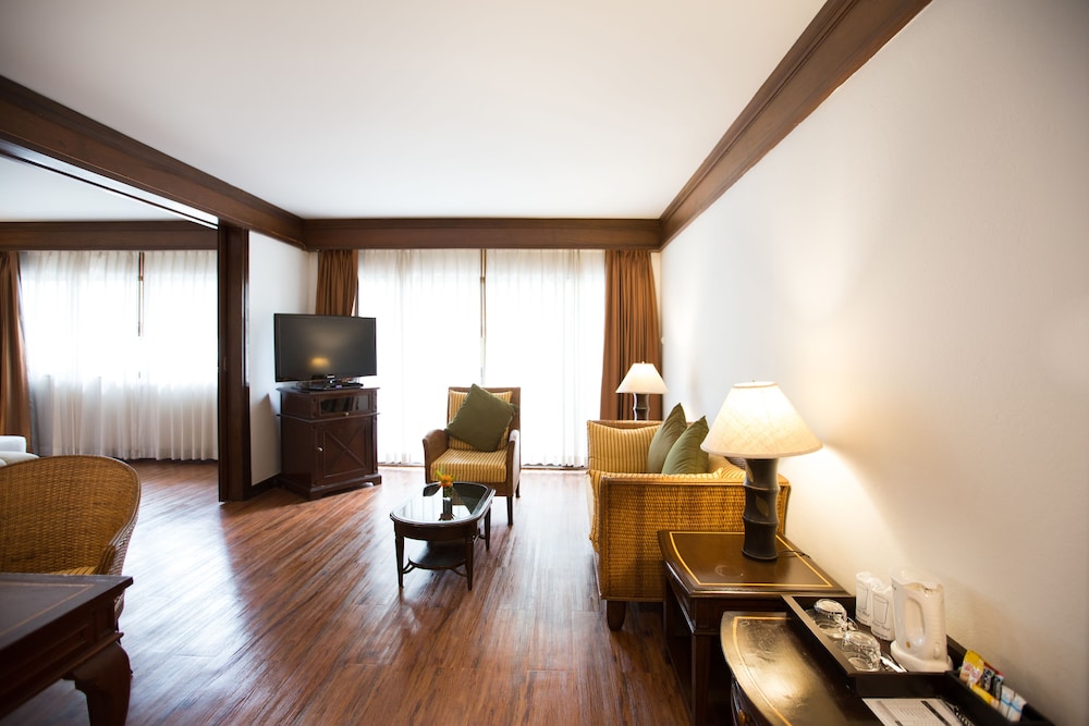Set in a beautiful and well-maintained garden secluded from a main highway, this hotel is historic and unique. The bungalows are exceptional for a relaxing experience and value. The suites are large. The charm of the buildings have been preserved in the woodwork and decor. The beds could use some updating, however, and the lift is not accessible to the disabled because a small flight of stairs must be ascended to get to it. Nevertheless, this hotel is excellent value and a welcomed oasis in Chiang Mai. The free shuttle to the Night Bazaar is a plus.
