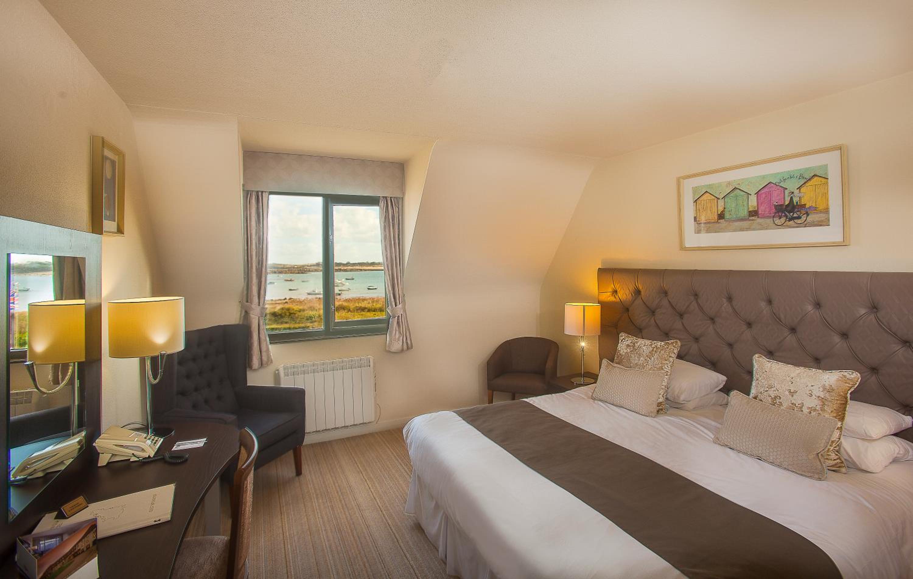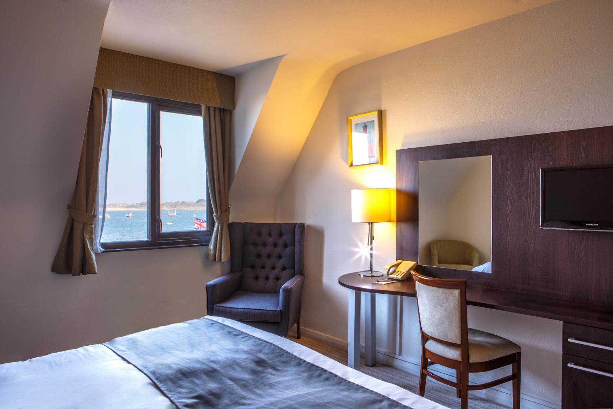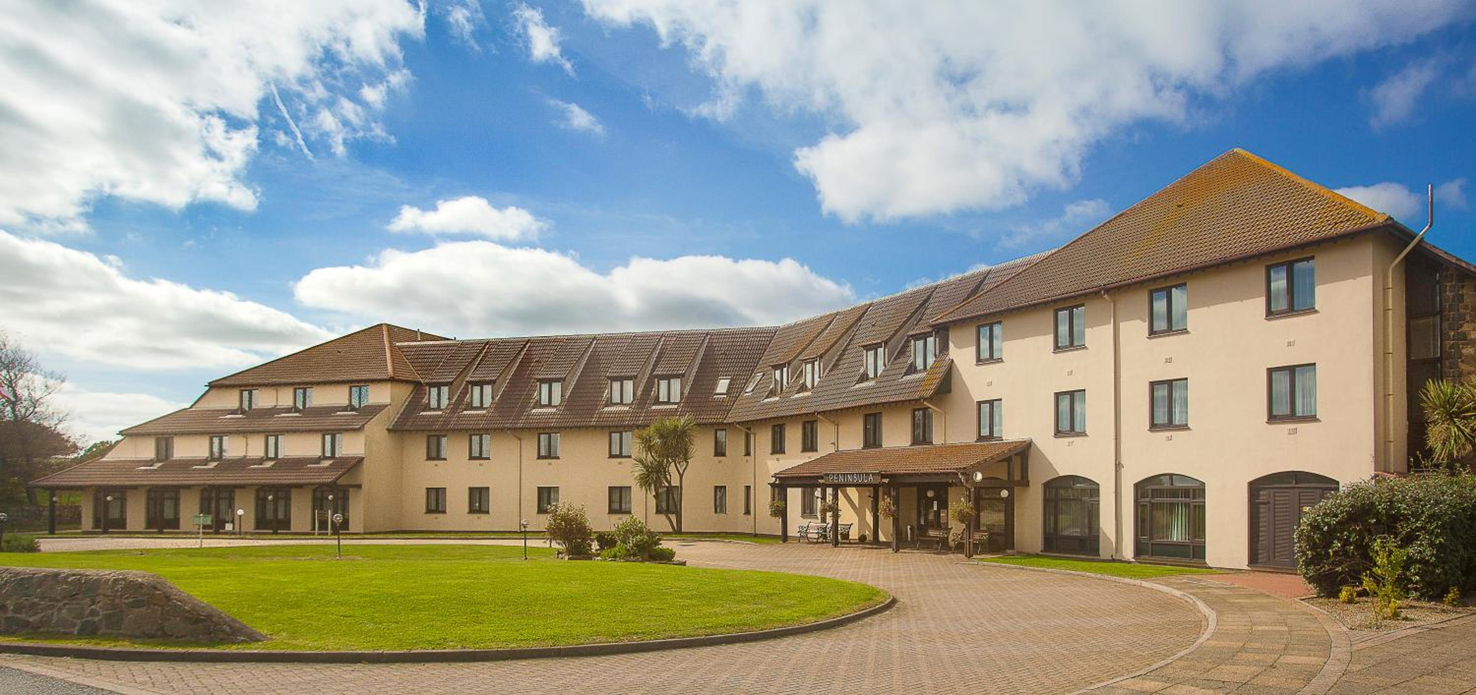 Nestled within 5 acres of gardens, the Peninsula Hotel offers a serene escape on a grassy peninsula in the peaceful parish of the Vale, Guernsey. Enjoy the picturesque views of the sandy bay and the calming atmosphere of this secluded location.