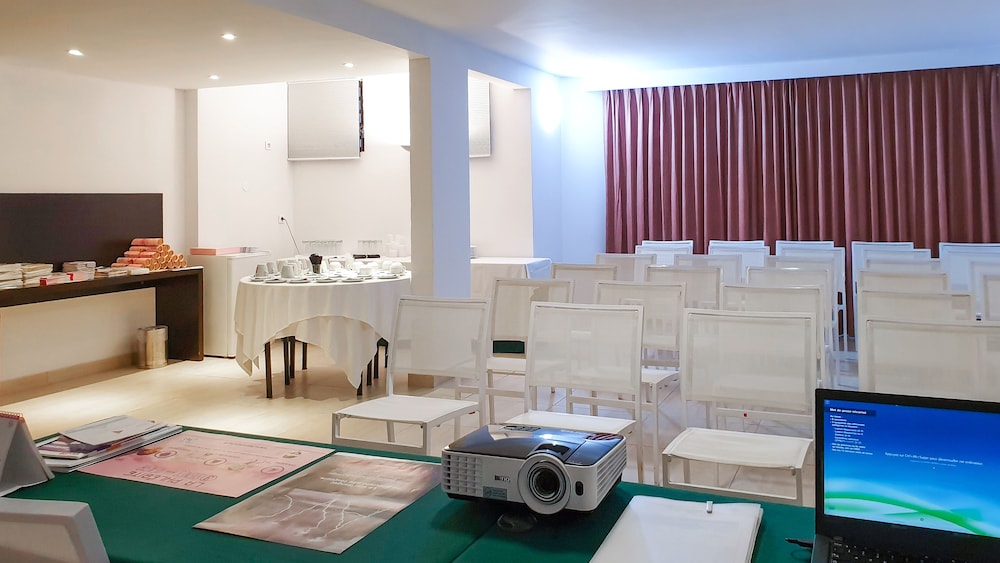 Hotel was decorated with different types of unique paintings and art throughout. The room was a good size. Bed was fairly comfortable, however the sheets were rough and made my skin itch. Bathroom wasn't very large and could use some modern touches, but was clean. Room came with a fairly good size patio, where the mini fridge was located (perhaps an outlet issue). I did enjoy the lighting in the room. The pool was a fairly good size, but needed some upkeep. The plastic was quite ‘scratched’ or worn. There was a decent amount of seating, but the cushions were a bit weathered. They also had loungers along the beach which was very nice. Beach was actually a dock area, so very small identified swim area. Hotel grounds were fairly expansive. Hotel did have a restaurant. Buffet for breakfast was €18 without eggs or €22 with eggs. I opted for a cup of coffee for €3. Lunch didn't have a very large menu, with limited vegetarian options. I had a brie salad, which was very good. Dinner was about the same, however my biggest issue with dinner was that it didn't open until 6pm. I got there around 3 for check-in and was hungry, but no other food nearby. Overall adequate hotel with few annoyances.