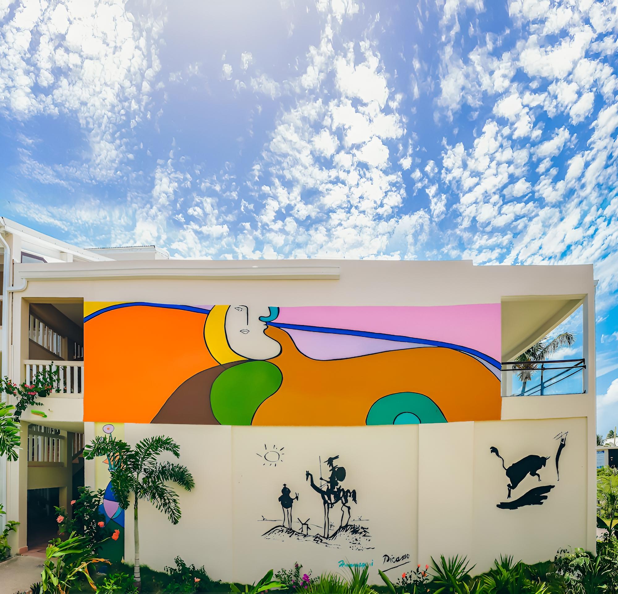 Hotel was decorated with different types of unique paintings and art throughout. The pool was a fairly good size, but needed some upkeep. The plastic was quite ‘scratched’ or worn. There was a decent amount of seating, but the cushions were a bit weathered. They also had loungers along the beach which was very nice.