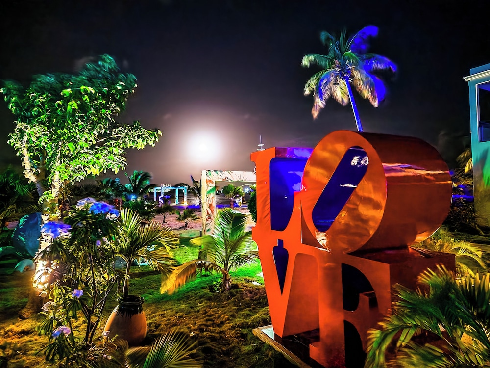Upon arrival we were greeted by a very unfriendly front desk employee. He was extremely unaccommodating and rude. The property itself was clean but seemed very run down. The restaurant was extremely overpriced with very sub par food ($60 for burger calamari). The property is not on a beach but rather on a lagoon. Suitcases are stored in an old room with limited security. The hotel is very isolated in location. The rooms were clean nice which was refreshing as we did not know what to expect after seeing the condition of the property. There is a nearby Italian restaurant that is very good and is 5 minutes away. Upon shift change at hommage, there was a very nice employee who was very accommodating and helpful which I must say made the experience a lot better.