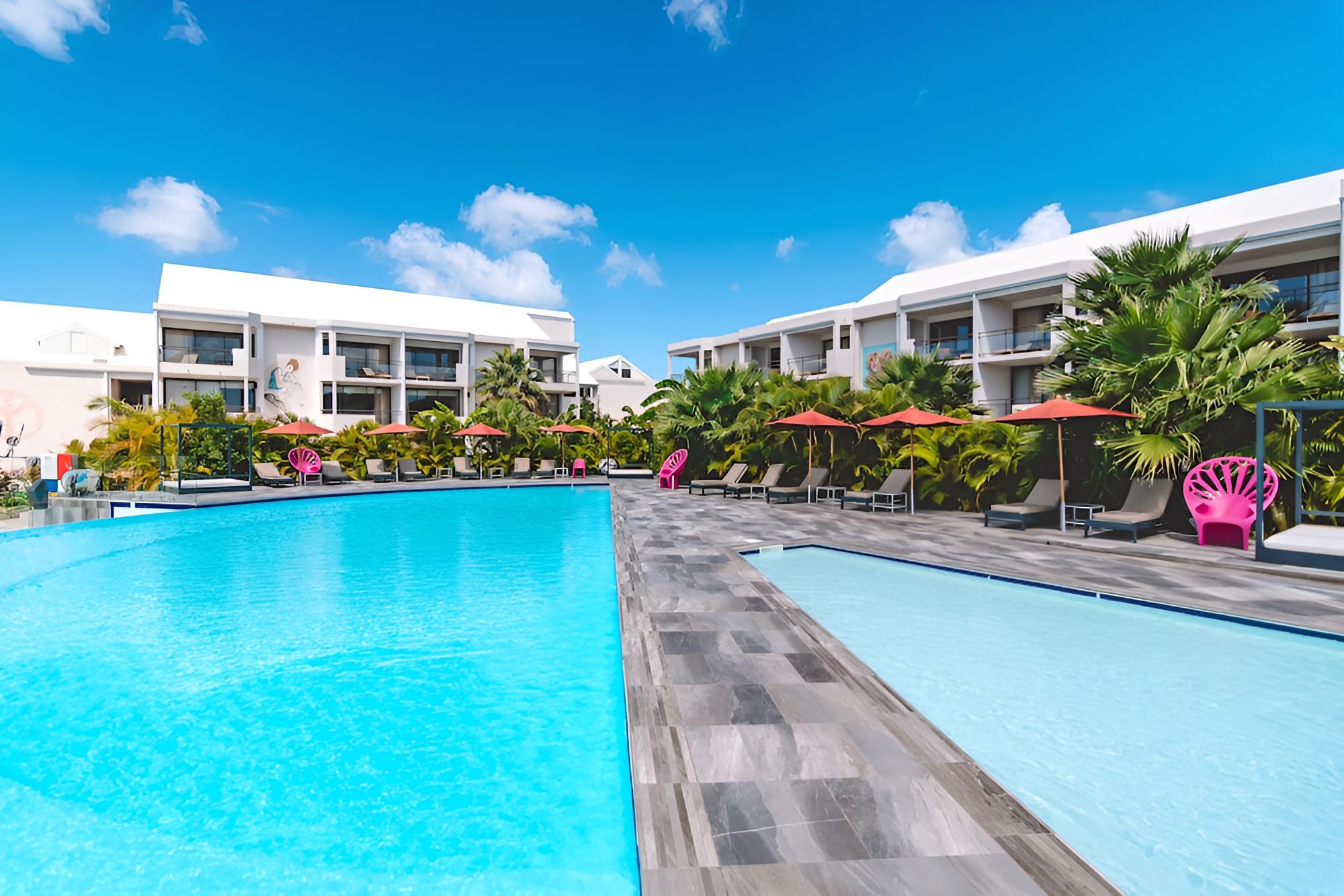 Pretty spot overlooking Simpson Bay. Nice beach restaurant for breakfasts and dinners and fun playground area for kids. Air conditioning wasn’t working well. Hotel was maybe understaffed. Service could’ve been better and the pool area could use a little attention.