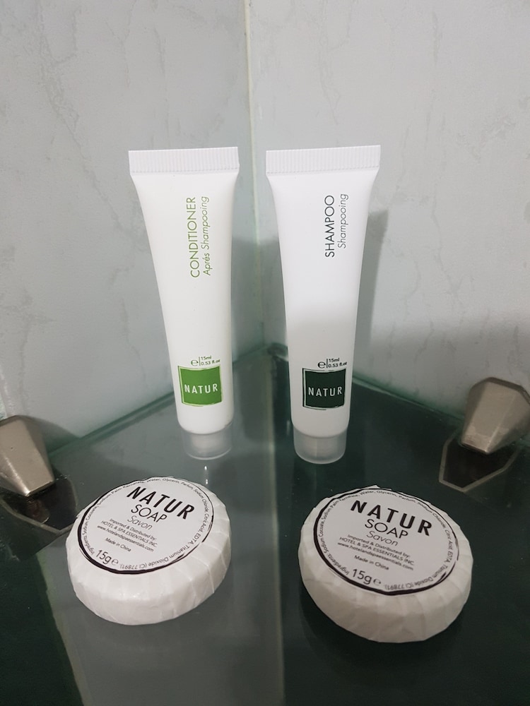 The entrance for the hotel is the back of the building right beside the laundromat, not as appealing as the actual lobby in the pictures. Check in area is in a very small space, can only fit 1 guest in, no area to hang around. My parents found a cockroach on the towels in the bathroom, no soap, shampoo, conditioner. However though staff are very friendly and very helpful. Will not recommend.