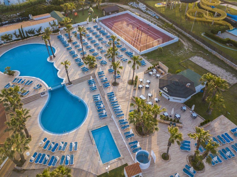 Lovely clean apartments in well maintained grounds with flowering shrubs next to apartments. The apartments had been refurbished to a good standard and were a good size. We had a lounge with a very good double sofa bed which everyone thought was comfortable and easy to fold the main bedroom was cool and comfortable. Tv excellent had lots of English channels. My only small gripe was the wardrobe was not internal refurbished and the shelves were old and dropped out. The other thing I didn't like was the shower tray it seemed to be stone but was looking old and needed to be replaced however the rest of room was very modern clean and nice style. The food was amazing and easily 4 star quality and variety for example we had fresh made pancakes and waffles at breakfast freshly squeezed strawberry juice and kewi along with traditional juices and breakfast options fruit etc. The main meal was seabass, roasted suckling pig, Piallla, lasagne, squid, fresh prawns amazing deserts all tastes catered for etc etc I could go on surfice to say their was variety and taste and changed every day. Also alcohol included at meals plus fizzy drinks. What made our stay was free access to the next door water park. Also entertainment very good team putting a lot of effort into the shows. Lion king was brilliant. Along with outside acts. All staff were helpful and pleasent. Pool nice it is a bit slippy in places round the edges. This is a great place for families. Great staff, great food and clean.