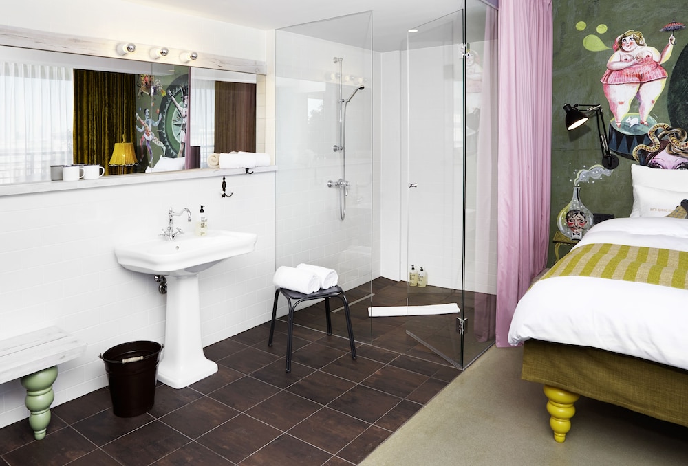 I wouldn't stay here again. It is evidently to some people's taste, but I found it quite irritating. As soon as we arrived, the lady checking us in said we'd be charged 75 euros "just in case" - whilst it's normal for hotels to take your card details, the way this was expressed made it seem that we were clearly thieves and so our card needed to be charged. The lady also communicated details about breakfast, mini bar etc etc far to quickly to take in - perhaps they can slow down a bit or put it on a piece of paper in the room - but left out important information about wifi, room servicing etc. In terms of the room, I really disliked the fact that the floor was stone but they didn't provide slippers. They also didn't provide a bathrobe or coffee in the room. Instead, they provided a bag for use (because clearly travellers don't have bags with them), access to a soft toy and "free" beers, coke and water. Whilst they sell conditioner in the shop downstairs, they didn't provide it in the bathroom, which is a bit cheap of them and not helpful for guests with long hair. The safe is the tiniest I've come across in a hotel ever. One morning, drilling in reception started at 8.15am and they had an "oh well, it was awful for everyone" approach to it. The whole things strikes me as a failed attempt at uber-trendiness but it's basically style over substance and the hotel's post post post post etc modern "we're all mad here" 90s ad-land thing doesn't compensate for the lack of comfort.