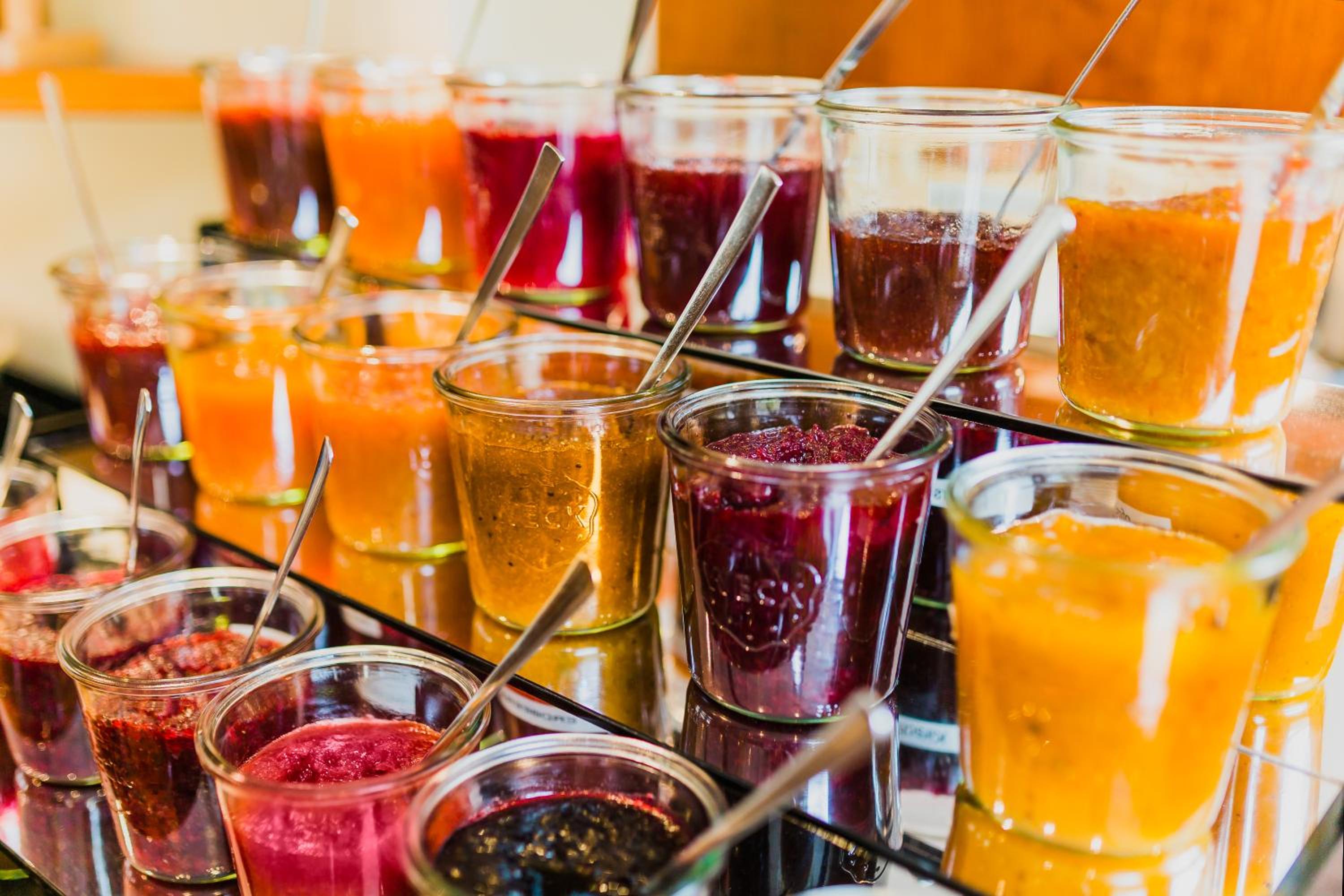 Das Frühstück war der Hammer, die größte Auswahl sogar vegan und glutenfrei, die man sich wünschen kann. Als Beispiel: 8 selbstgemachte Säfte, fast schon Smoothies, 20 selbstgemachte Marmeladen, Müsli und Nüsse in allen Variationen, um nur eine kleine Auswahl zu nennen.