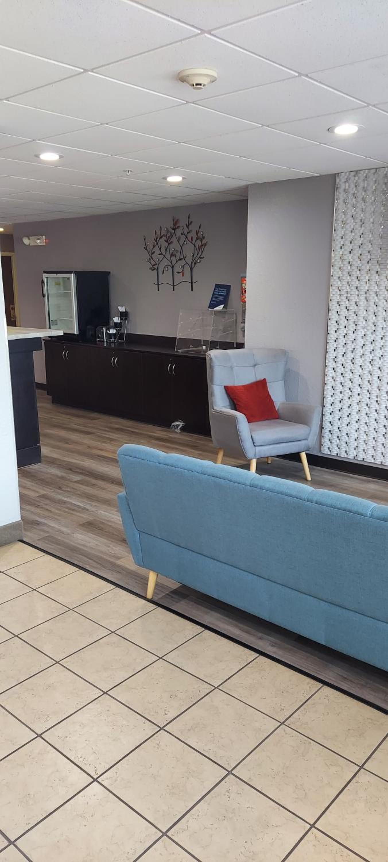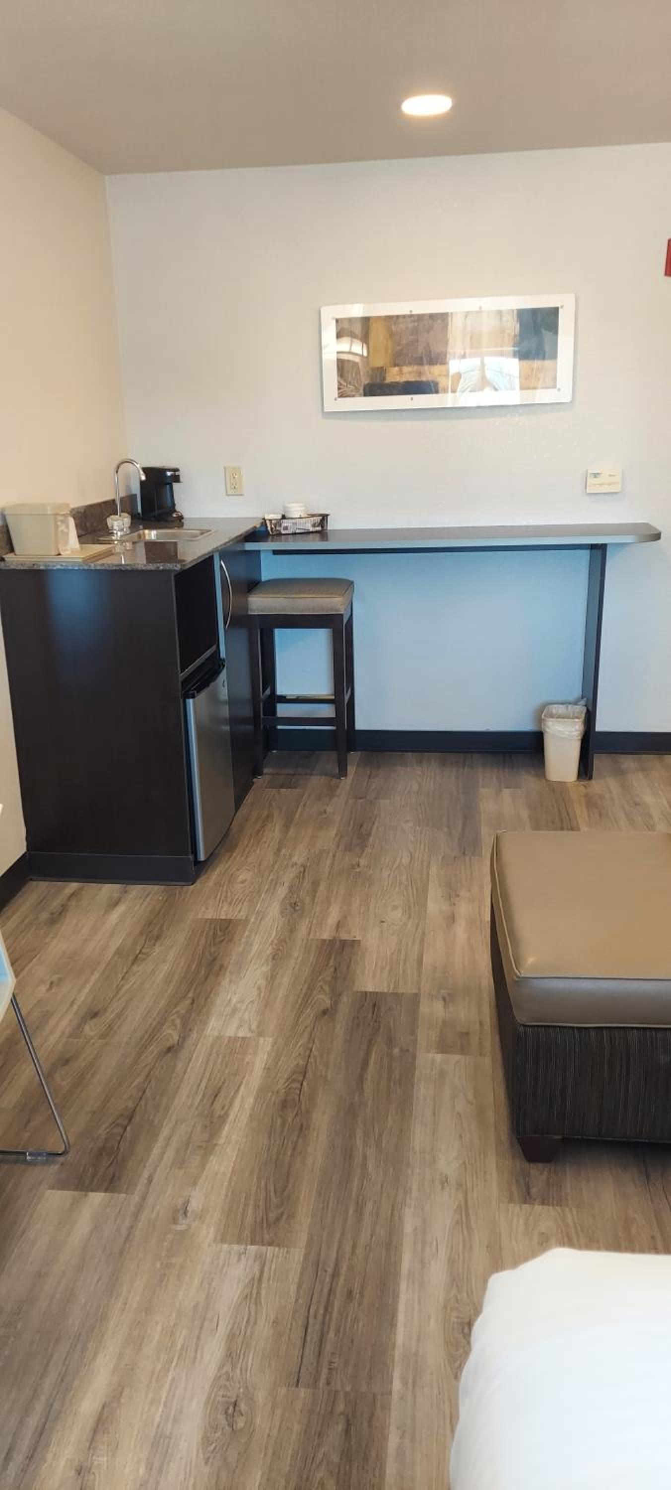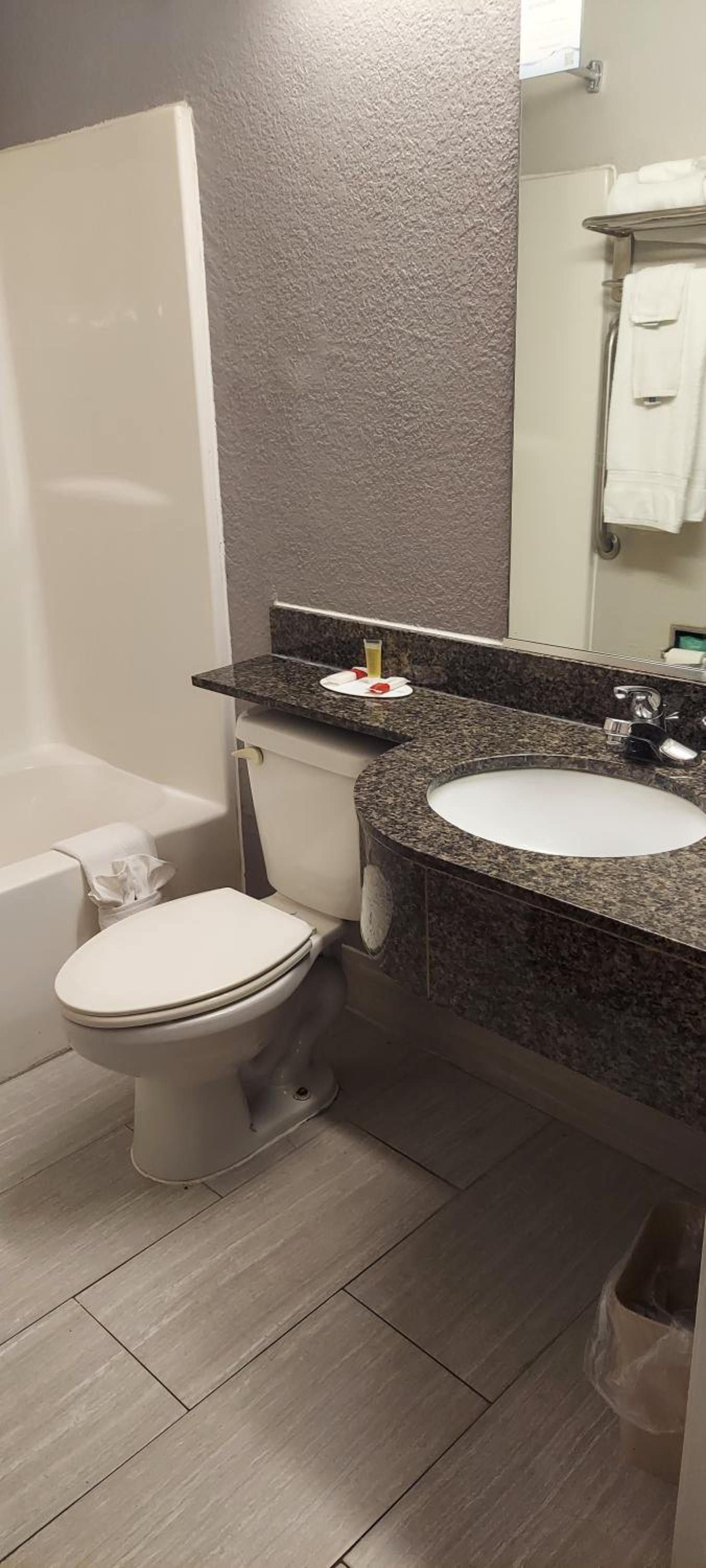 I Had to change rooms. First room bed wasn’t made and had a red stain on it same as the second room. Third room had hair on the floor, sink and tub. Red stain again on throw liner on bed. No hot or warm water. White stain on chair and mirror. I didn’t get no sleep because of noise. will never go back to the hotel and I waisted my money for nothing.
