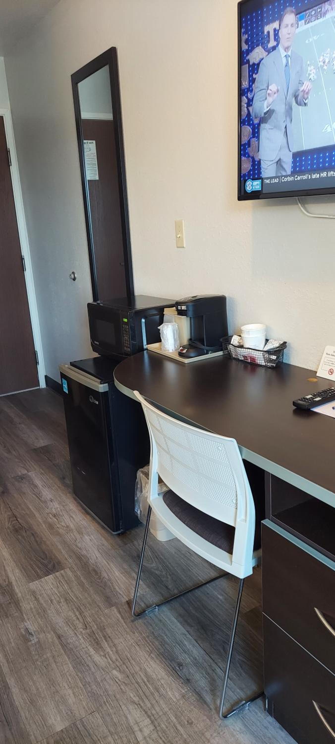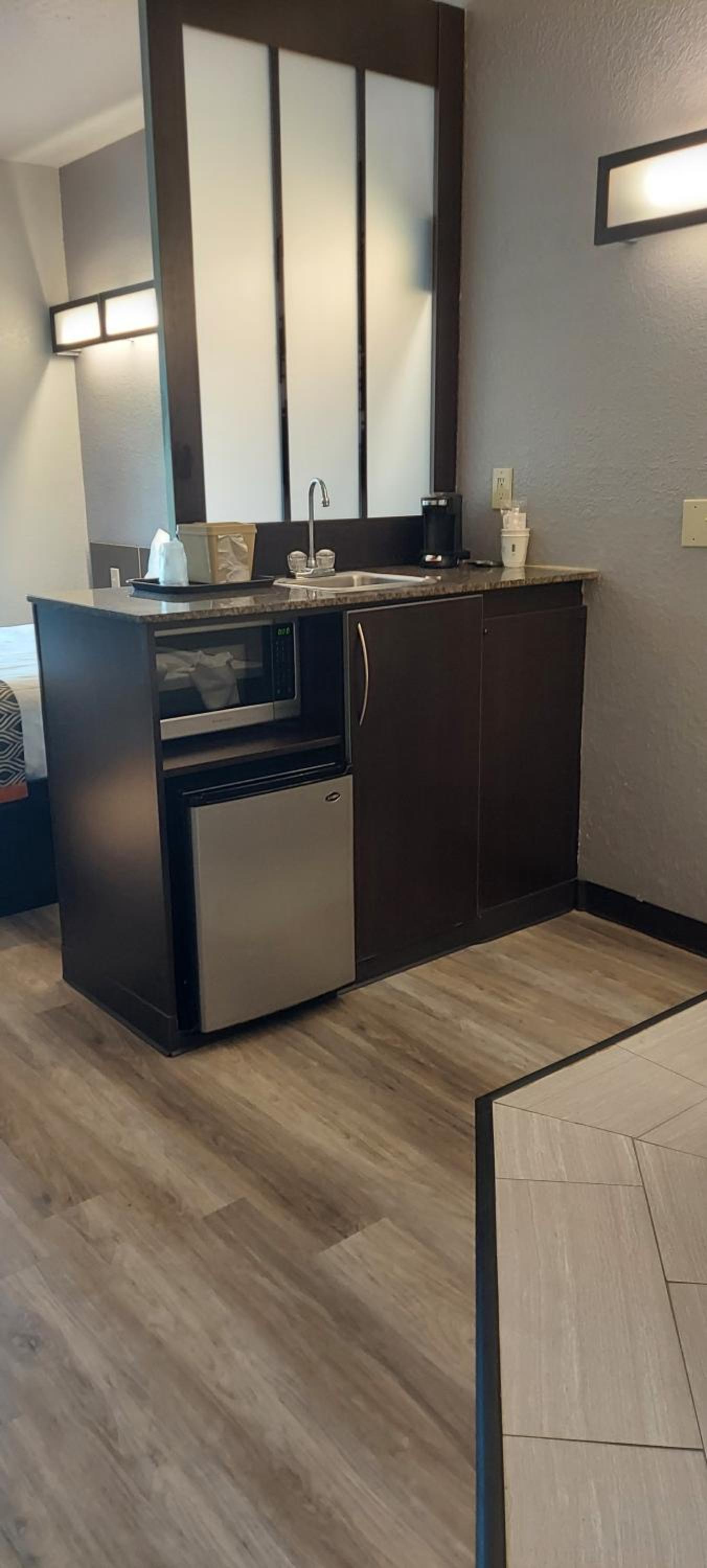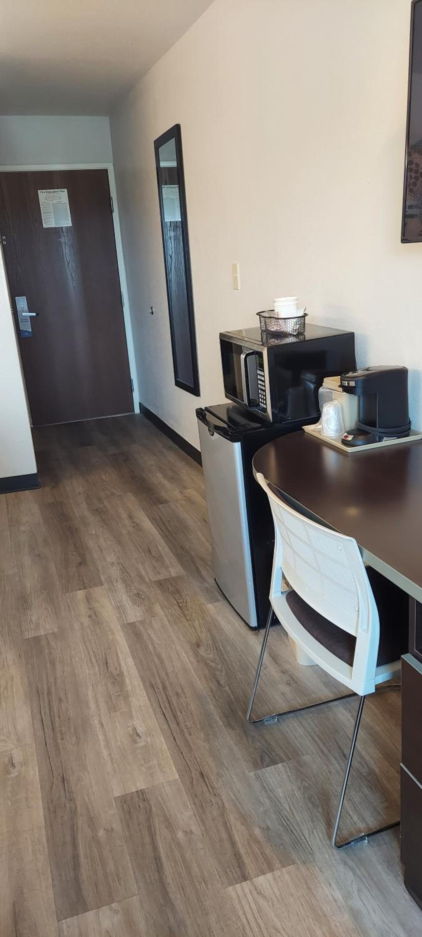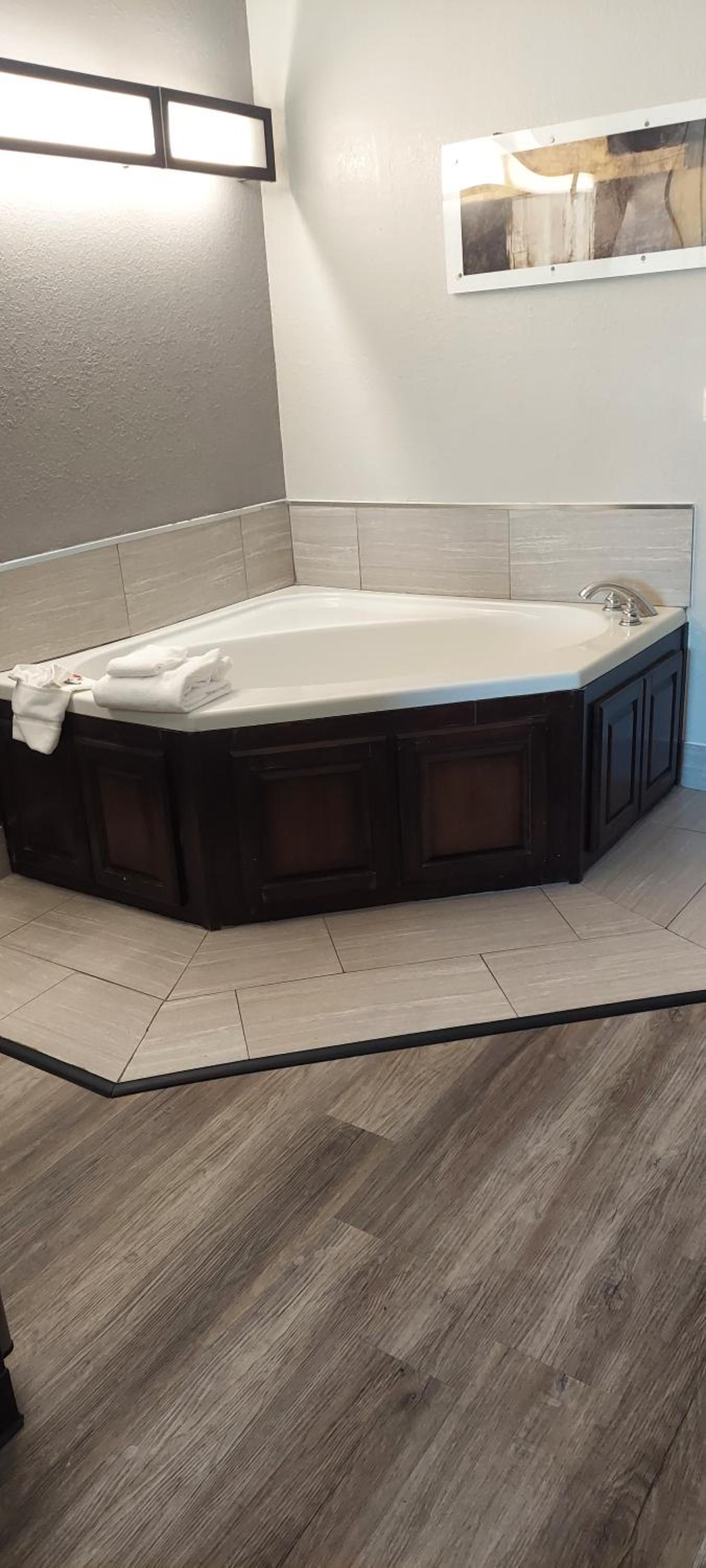 I Had to change rooms. First room bed wasn’t made and had a red stain on it same as the second room. Third room had hair on the floor, sink and tub. Red stain again on throw liner on bed. No hot or warm water. White stain on chair and mirror. I didn’t get no sleep because of noise. will never go back to the hotel and I waisted my money for nothing.