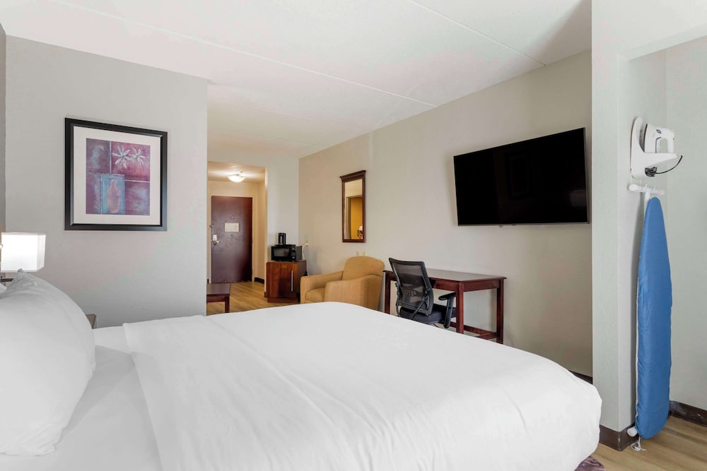 Room was spacious. Beds was comfortable as well as pillows. I liked that there was 4 pillows on each bed as most hotels only do 2 per bed. House keeping needs to do a better job at cleaning. Shower had a hair tie left in the soap holder which makes me believe they didn’t even clean it. Floor was not swept in bathroom either. The area beside the bed was gross. Looked like something had been spilled down the side of the night stand and had never been cleaned. Besides needing a good clean the room itself was fine. Air unit didn’t work very well. Air was cold but barely blew out. Didn’t eat breakfast as it was not open yet when we checked out. Plenty of parking, quiet area