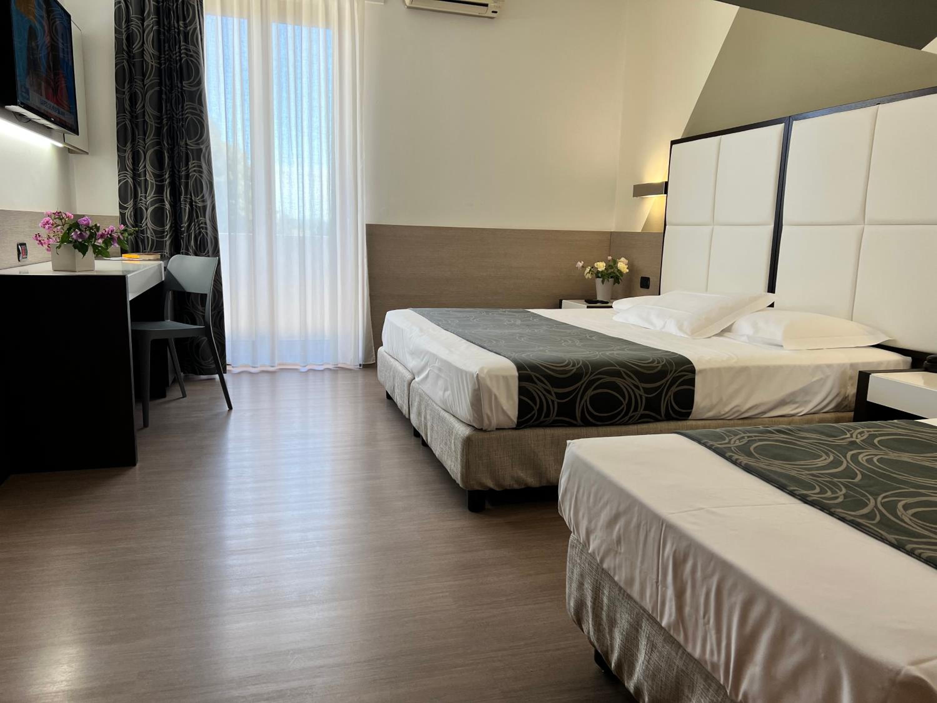 Camere belle e pulite. Personale molto gentile e disponibile. L hotel è silenzioso, dotato di ogni confort: frigo, tv, macchina del caffe’. Colazione super!!