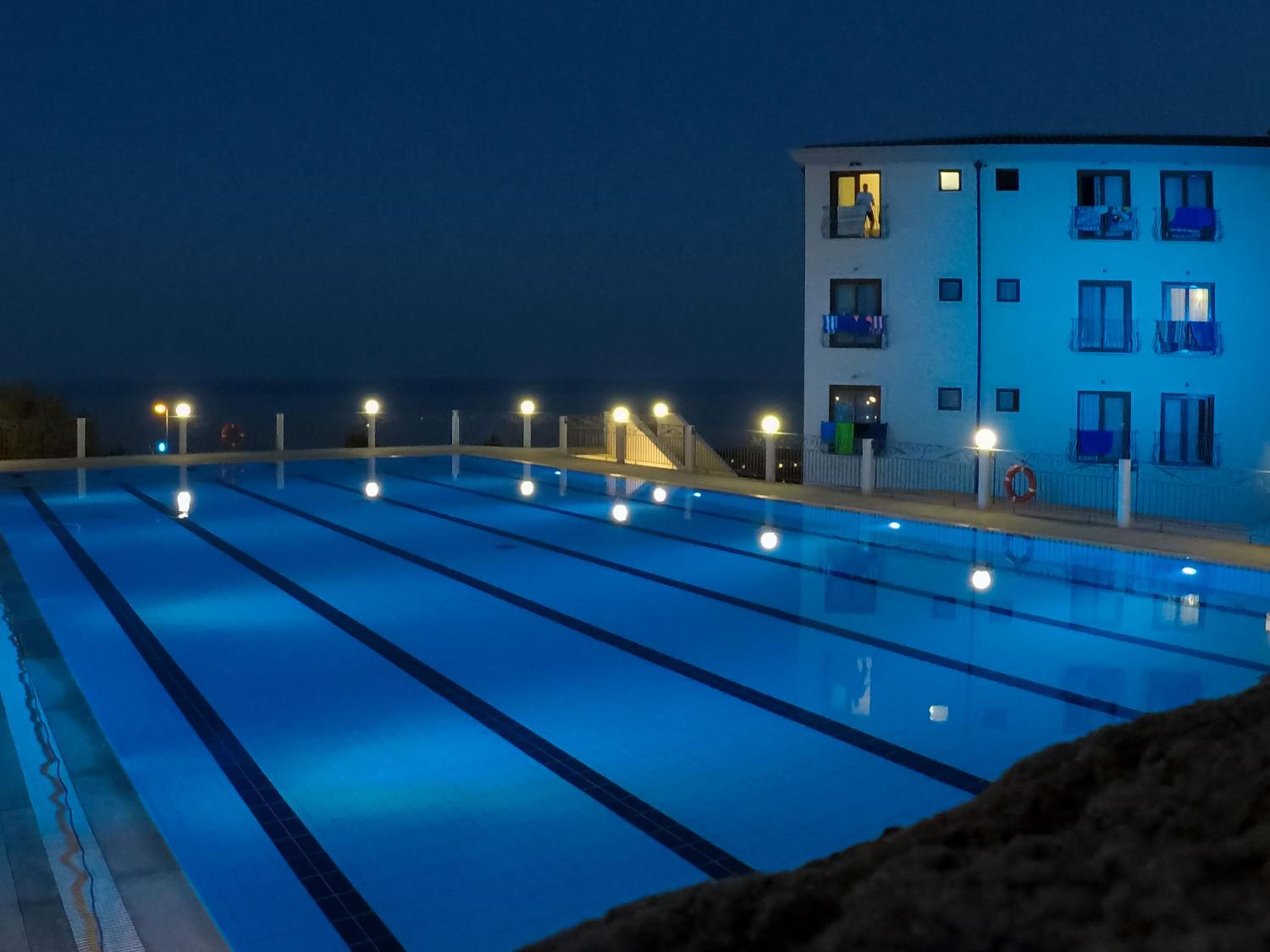Der Pool hat eine sehr gute Größe. Die Größe der Zimmer.