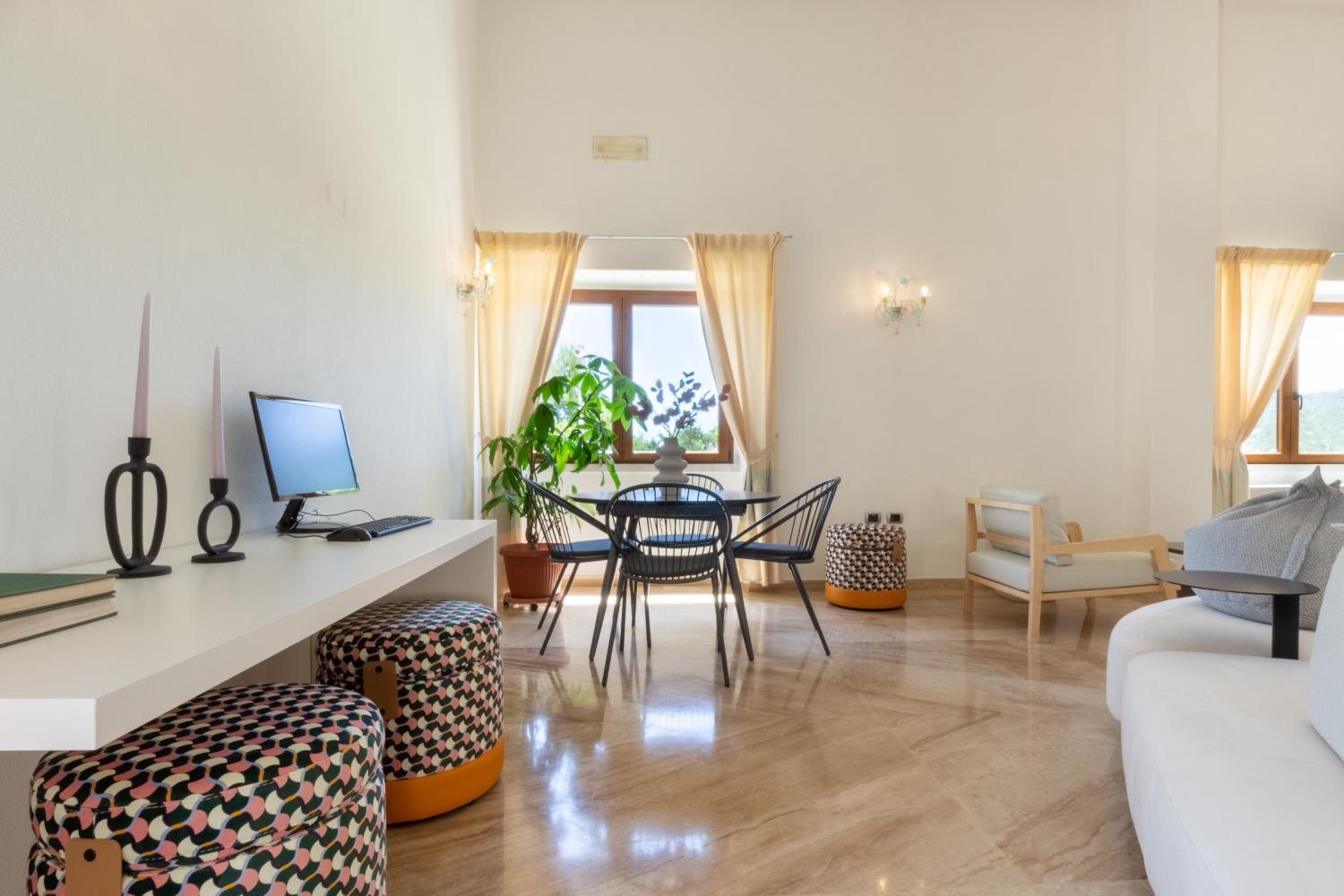 Hotel Brancamaria, located at the entrance of Cala Gonone, offers bright rooms with spacious bathrooms and a refreshing outdoor pool. The rooms, decorated in soothing cool tones, are fully air-conditioned and equipped with modern amenities including a minibar and satellite TV. Some rooms even boast a relaxing hydromassage bath and stunning views of the pool, mountains, or Mediterranean Sea.