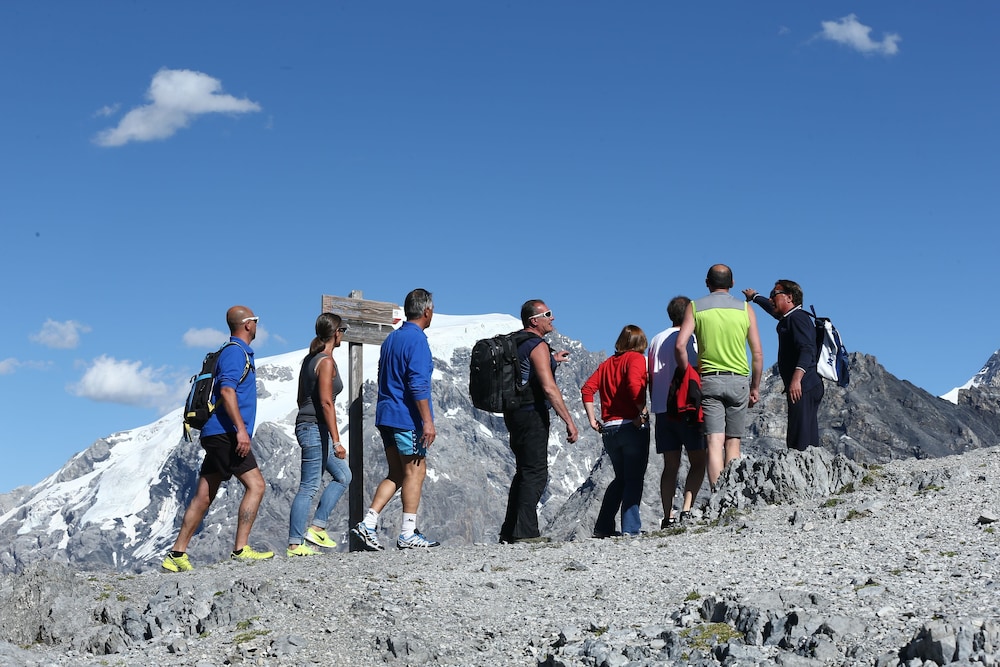 Hotel liegt oben auf dem Pass und direkt an der Seilbahn auf den Gletscher. Genügend Parkplätze vorhanden.