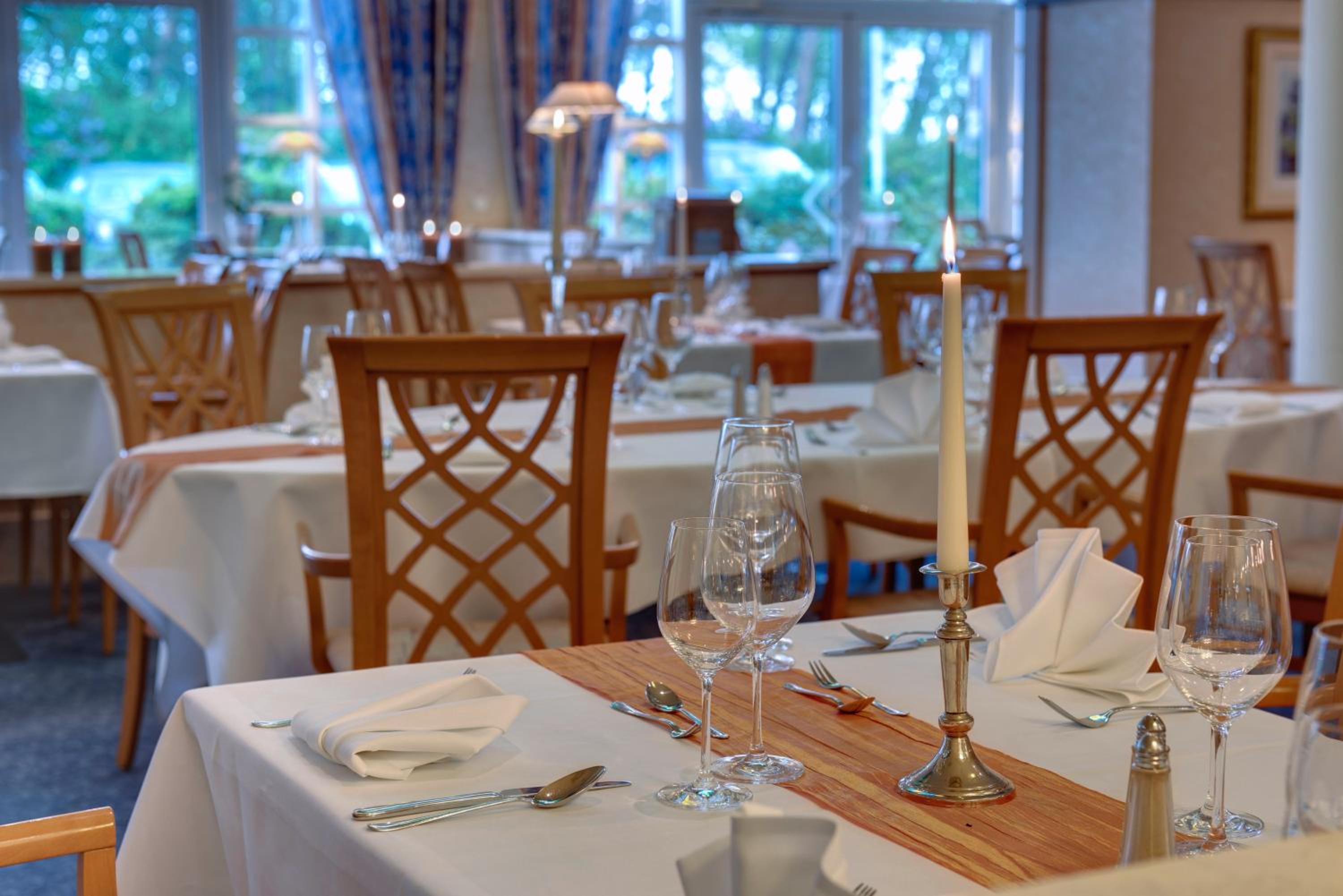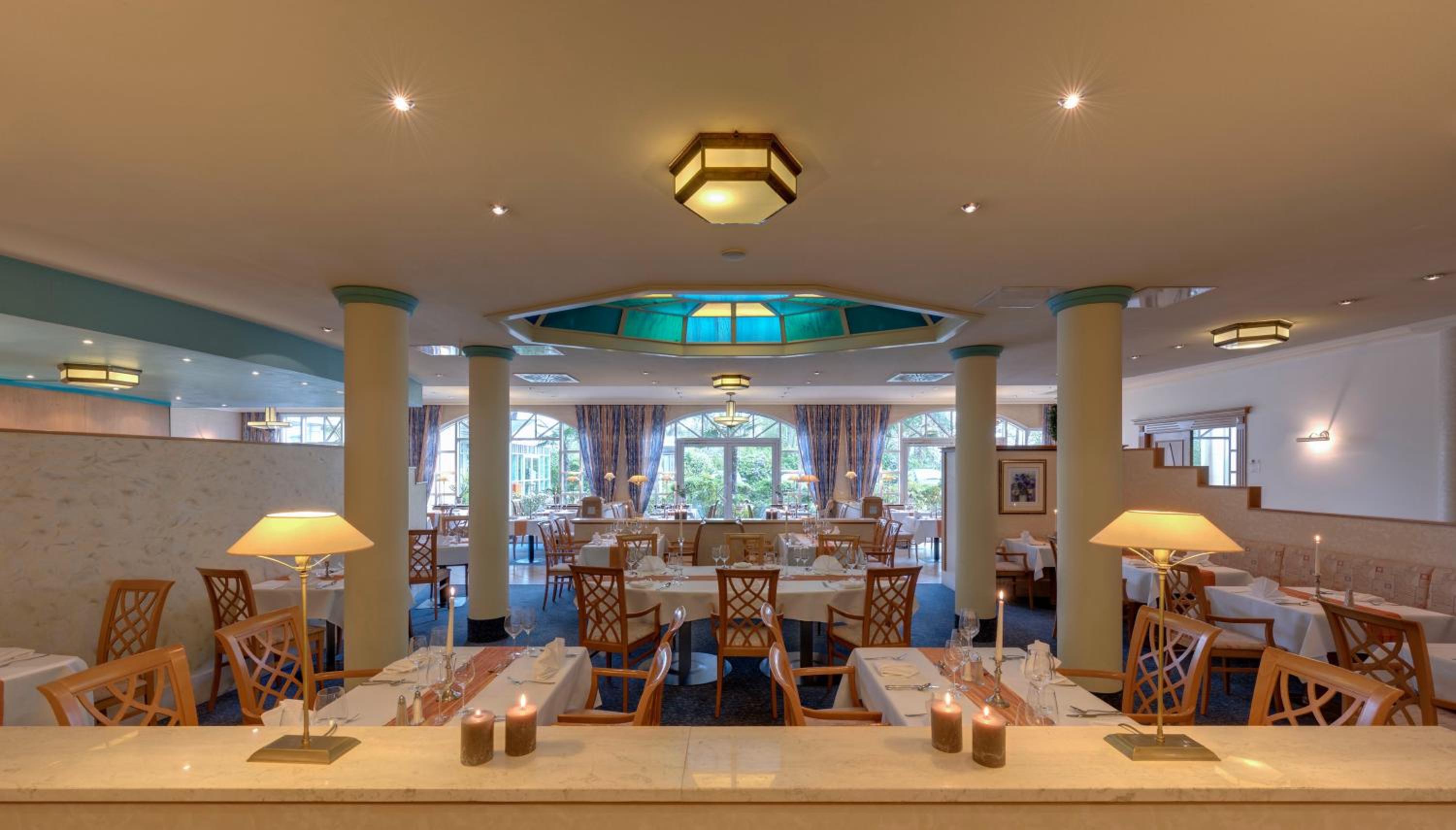 Indulge in regional specialities and seasonal dishes at the hotel's Bernstein Restaurant. For a more casual setting, guests can unwind at the on-site Irish Pub, which also hosts live music on Saturday evenings.