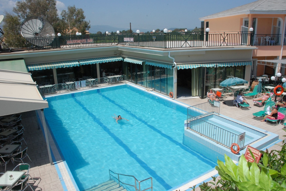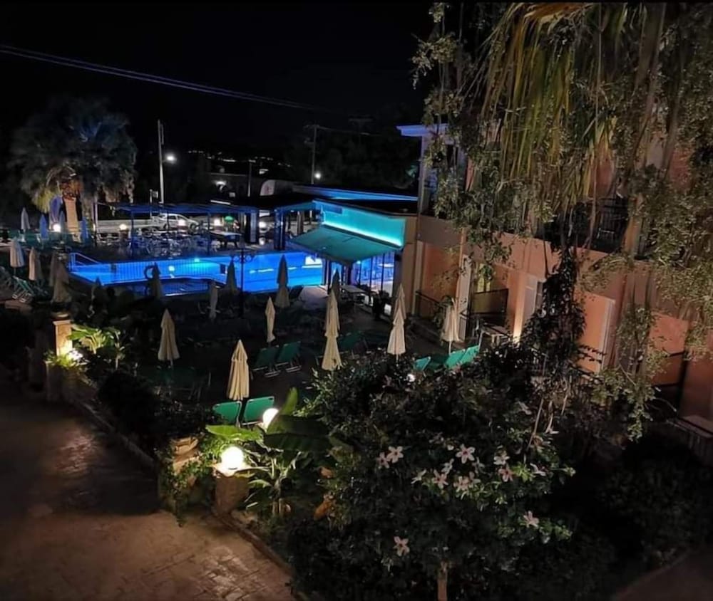 A fantastic base for a holiday on a beautiful Greek Island. The accomodation provides everything you need for a comfortable and relaxing break. The staff are fantastic - very welcoming, entertaining and prepared to help you with any request!! The supermarket attached to the complex caters for any additional requirements you may have, and if you're a fan of sport you can pretty much gurantee that you can catch whichever match / race you're intersted in on one of the many screens in the sports bar. There is a well equipped, secure playground for the little ones near the pool area, and plenty of sun loungers for the sun worshippers amongst you!