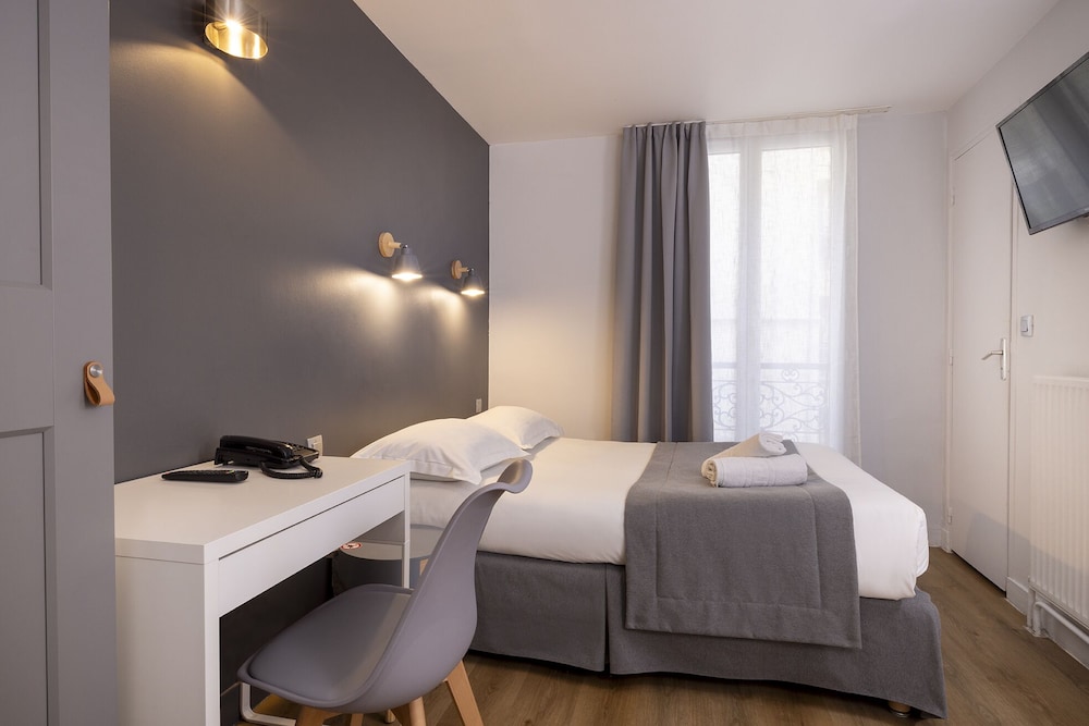 L’hotel si trova nel quartiere di Montmatre, a circa 20 minuti a piedi dal Sacro cuore. Nella zona ci sono boulangerie ottime. La reception è carina, le camere sono molto piccole e poco insonorizzate. Il servizio di pulizia buono, cambio asciugamani tutti i giorni. Il bagno molto piccolo.